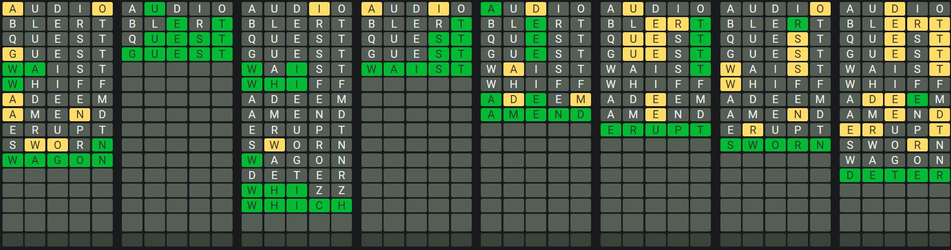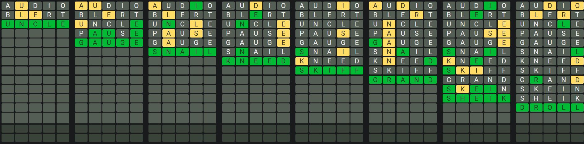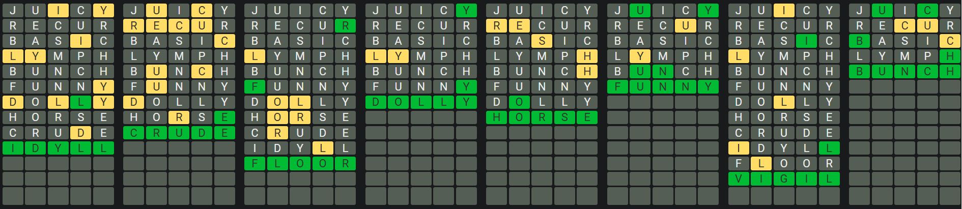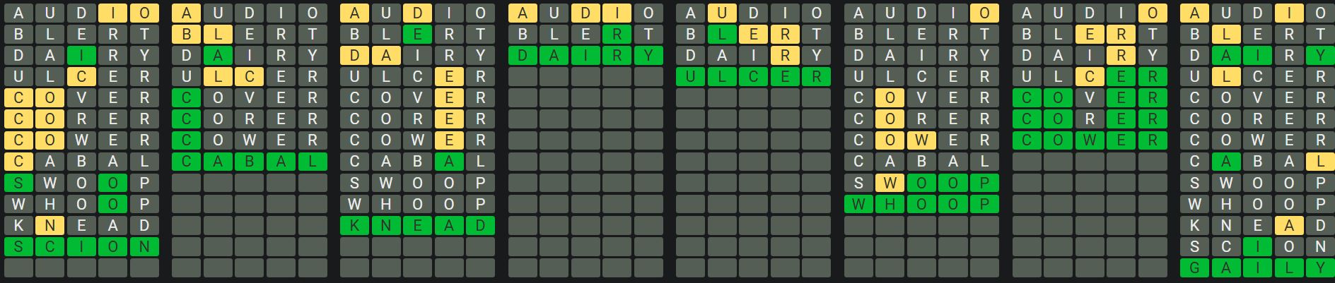 The Sequence Mode is similar to the original Octordle game with the following changes.