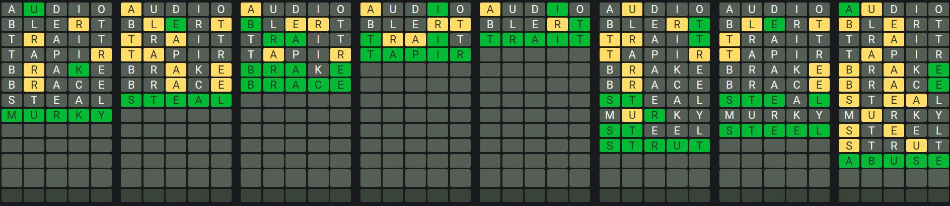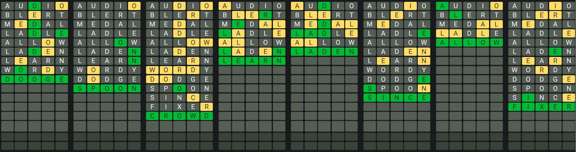 The Sequence Mode is similar to the original Octordle game with the following changes.