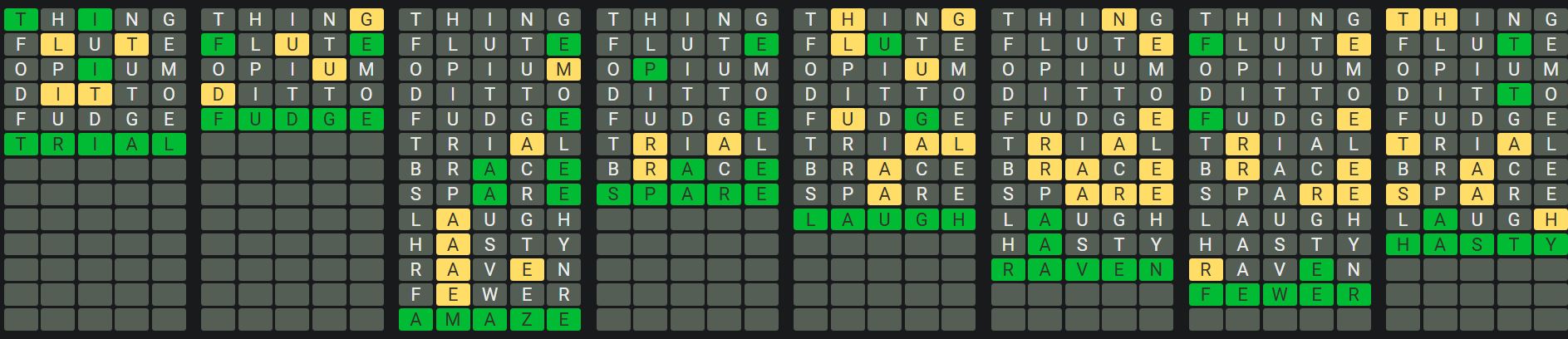 Octordle is a difficult game in which players must guess eight five-letter words at the same time while only having thirteen guesses! The game functions similarly to Wordle in that there are no clues to assist you in guessing the words, but once you have guessed a word, the tiles will change colour.