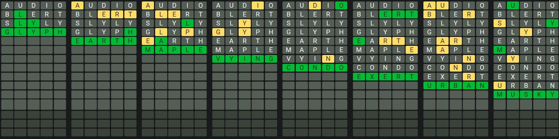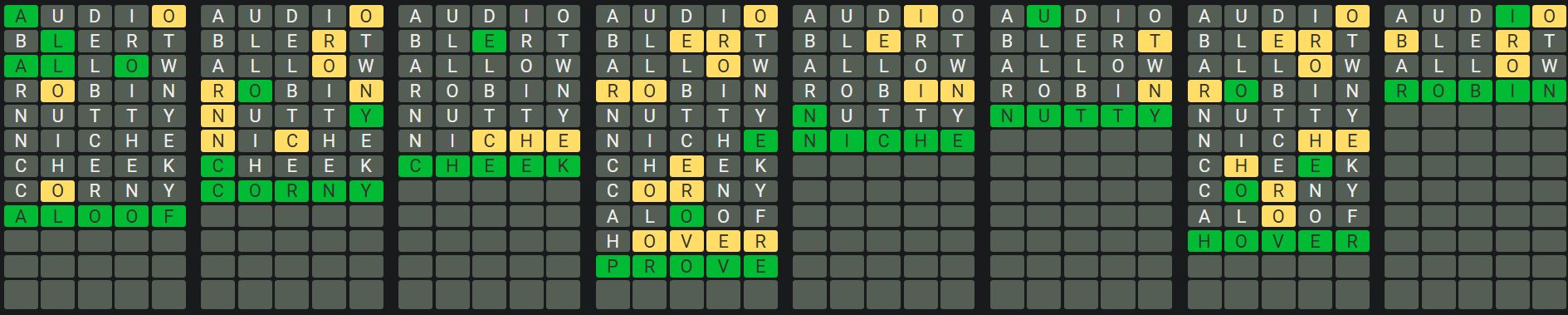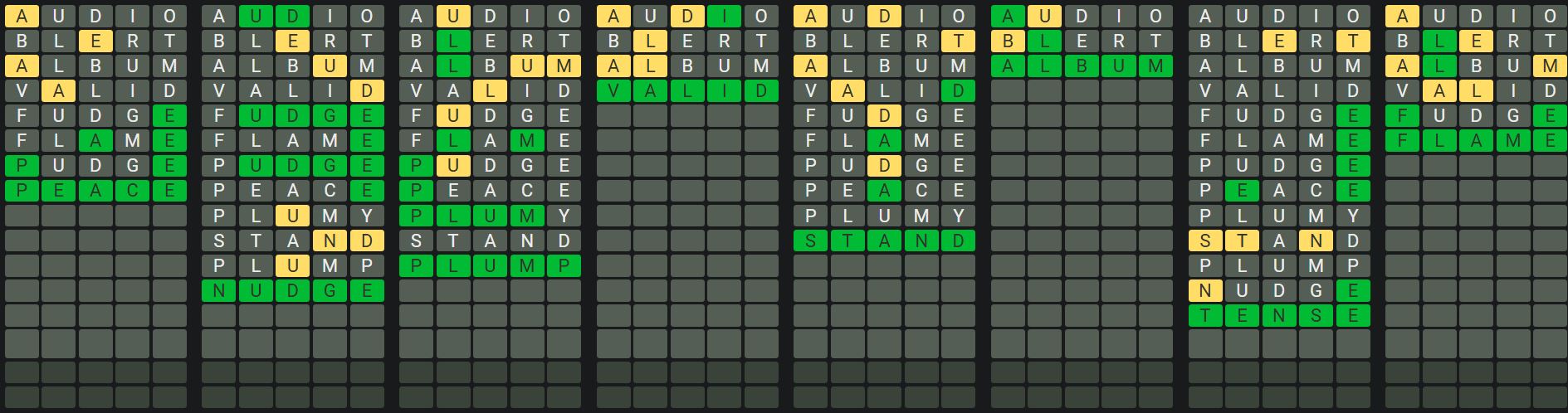 The Sequence Mode is similar to the original Octordle game with the following changes.