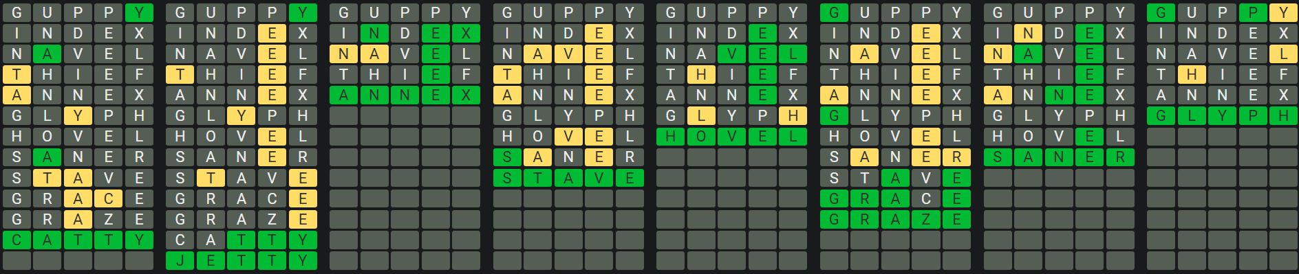 Hint 5: There are no repeated letters in any words today.