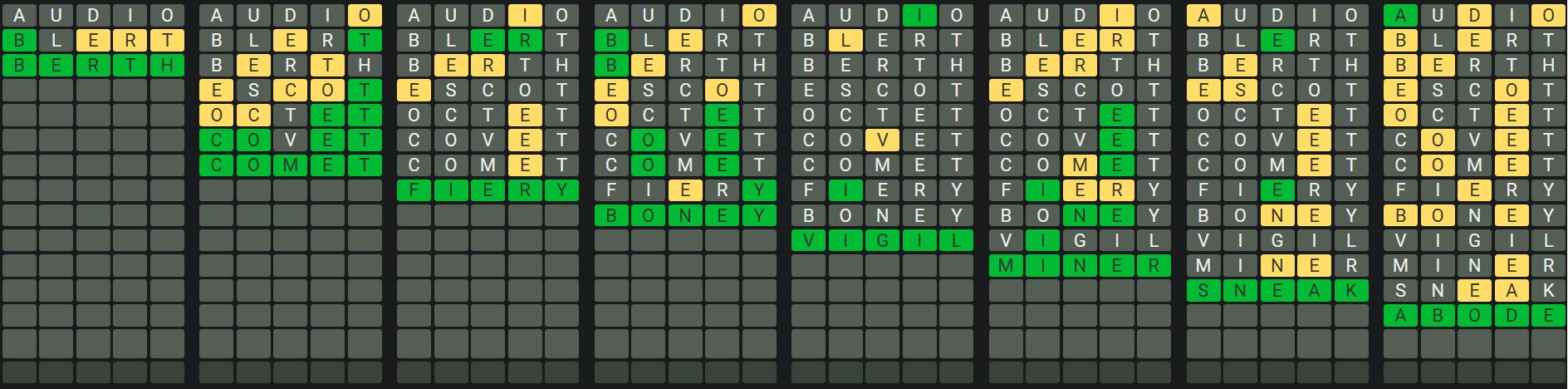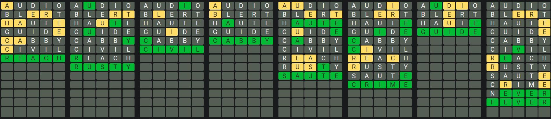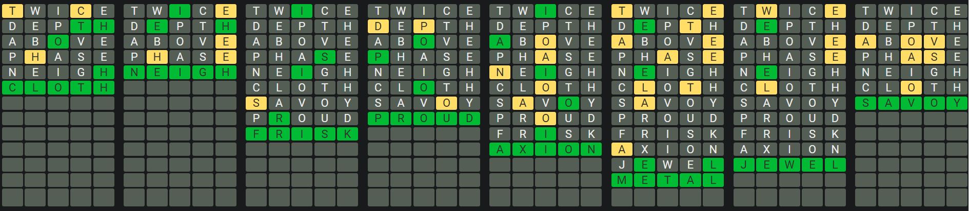The Sequence Mode is similar to the original Octordle game with the following changes.