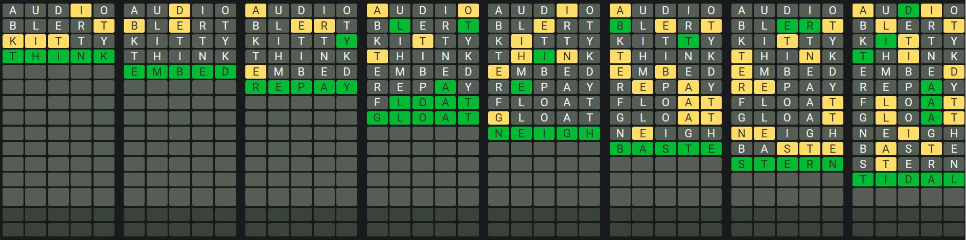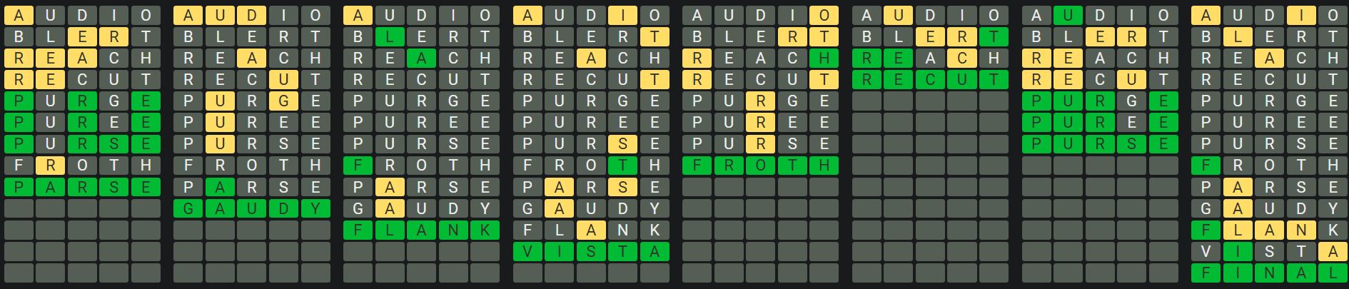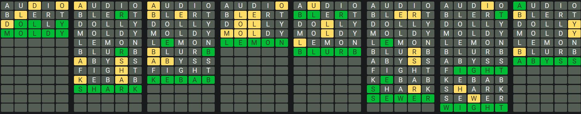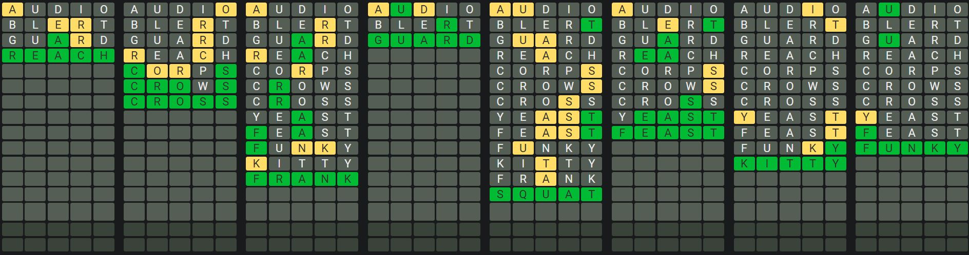 The Sequence Mode is similar to the original Octordle game with the following changes.