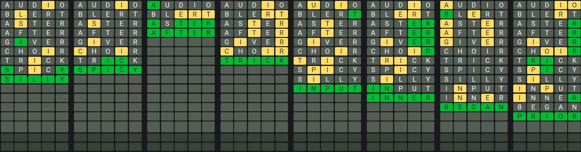 The Sequence Mode is similar to the original Octordle game with the following changes.