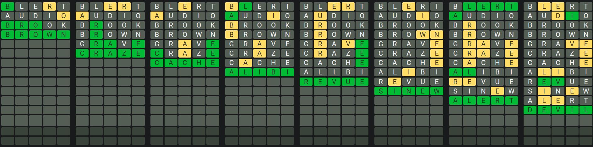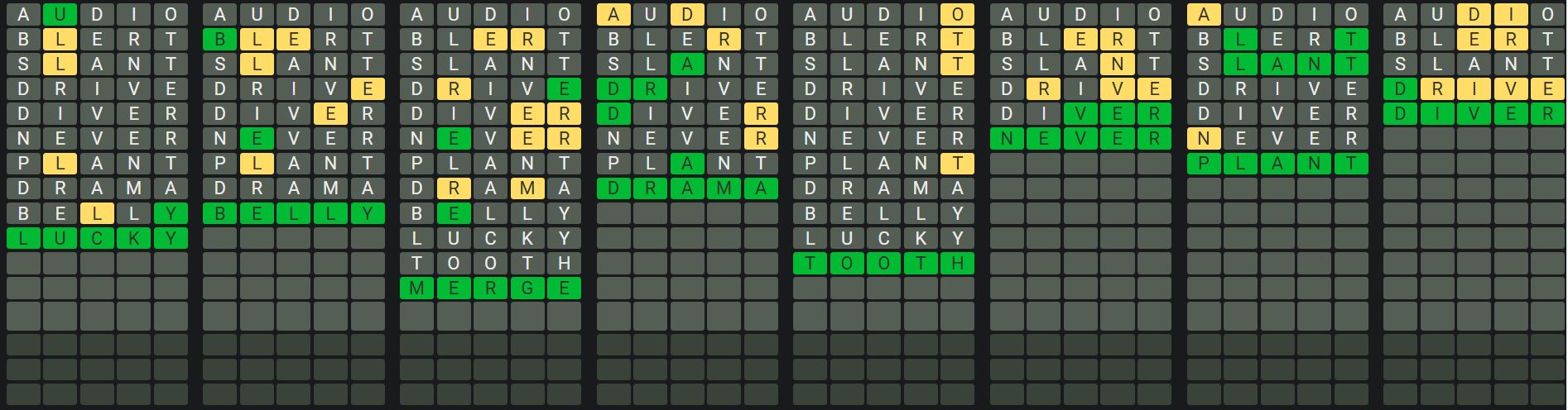 This will help you realize which letters appear in each word so you can solve the words quickly and efficiently. There may be some words that have repeated letters, so make sure you keep that in mind when guessing the words.