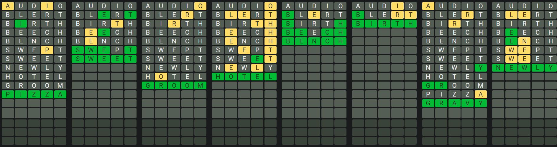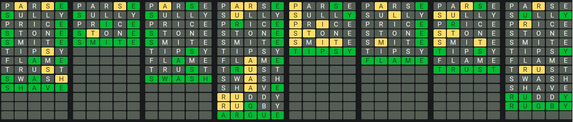 The Sequence Mode is similar to the original Octordle game with the following changes.