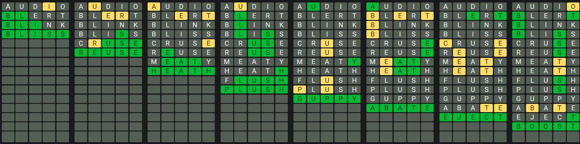 This will help you realize which letters appear in each word so you can solve the words quickly and efficiently. There may be some words that have repeated letters, so make sure you keep that in mind when guessing the words.