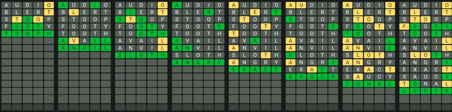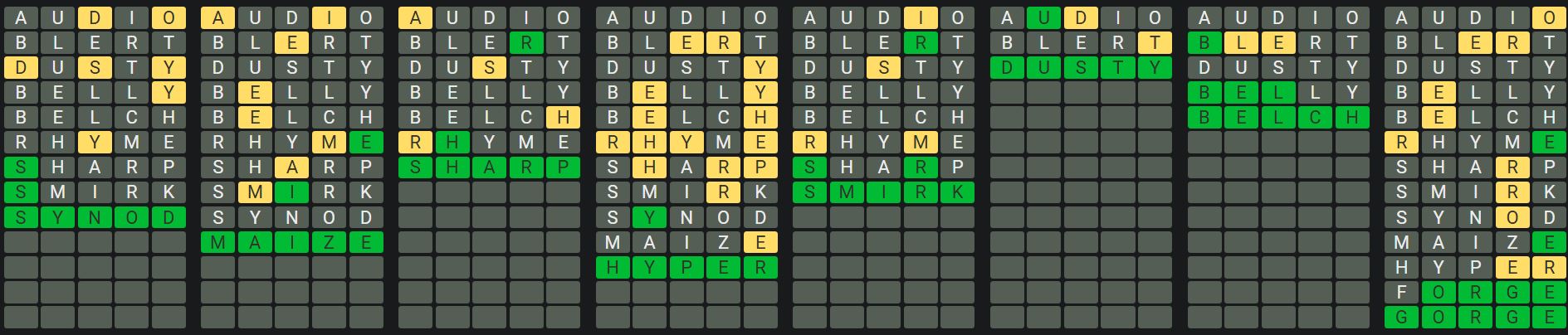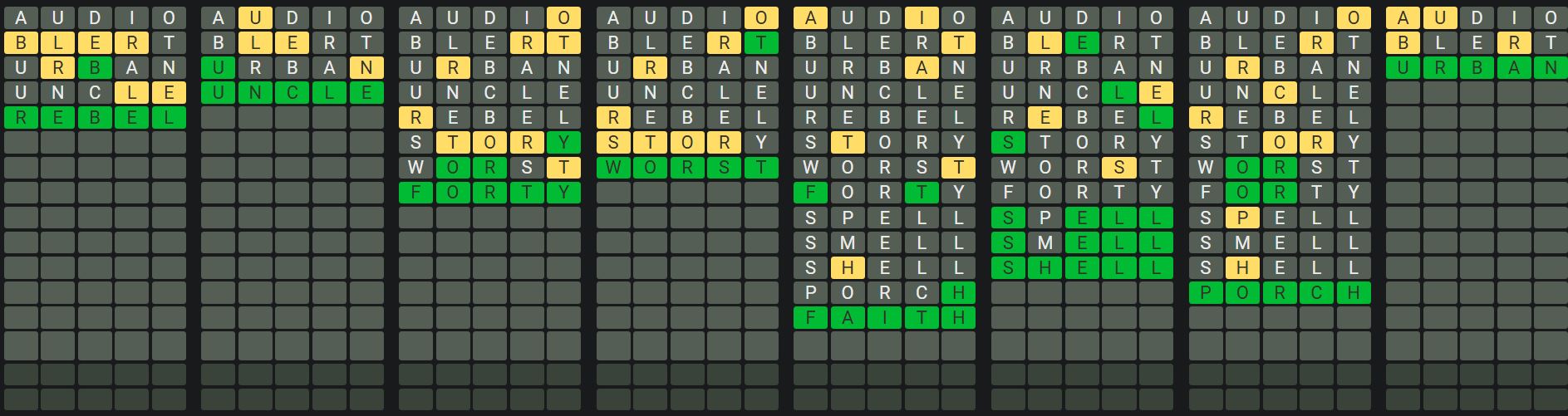 The Sequence Mode is similar to the original Octordle game with the following changes.