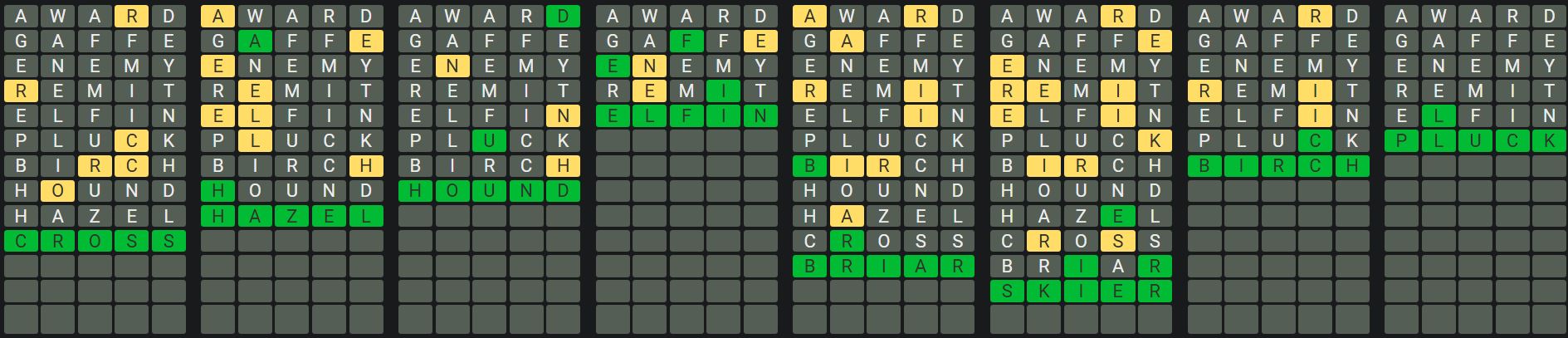 Octordle is a difficult game in which players must guess eight five-letter words at the same time while only having thirteen guesses! The game functions similarly to Wordle in that there are no clues to assist you in guessing the words, but once you have guessed a word, the tiles will change colour.