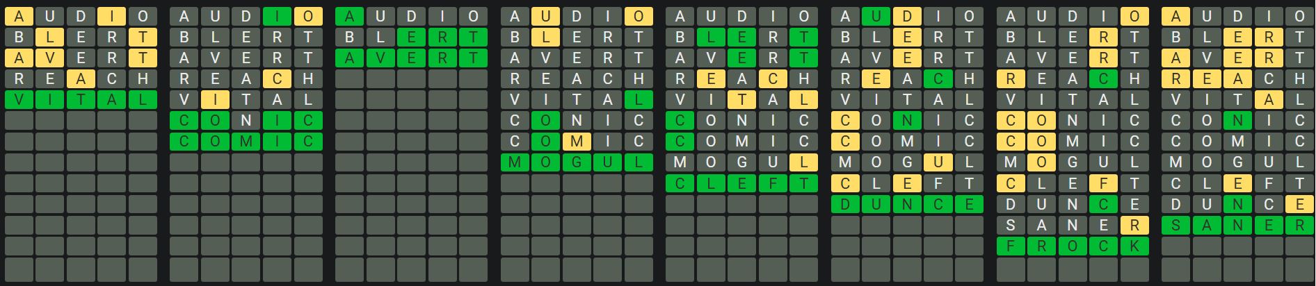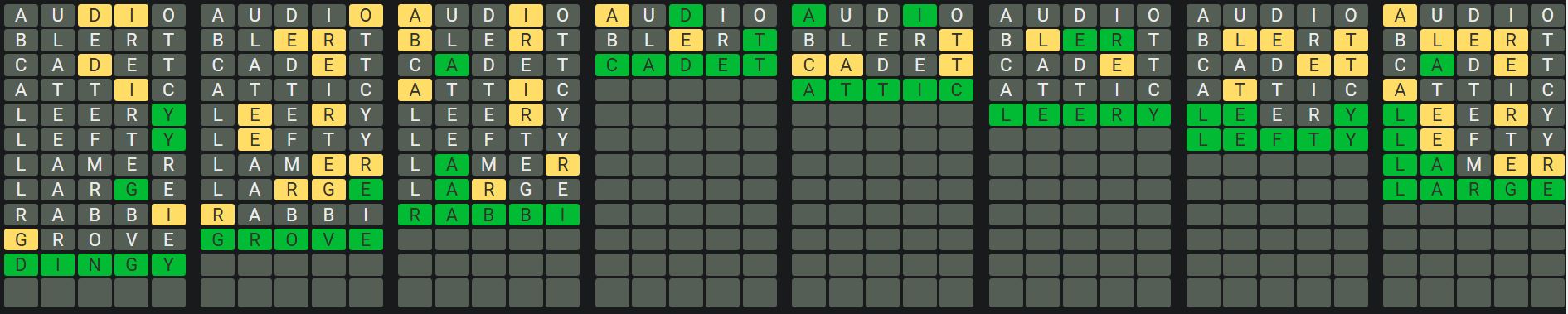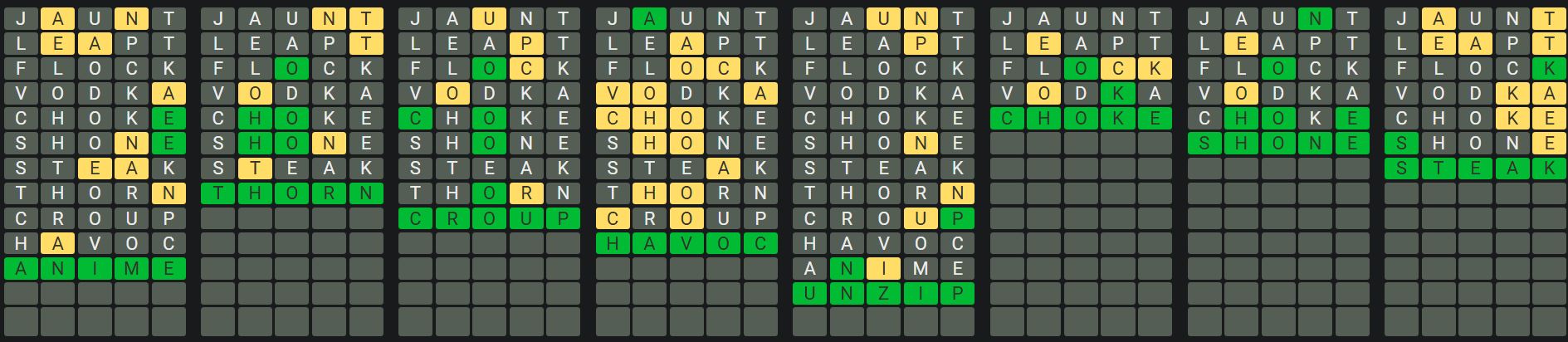 The Sequence Mode is similar to the original Octordle game with the following changes.