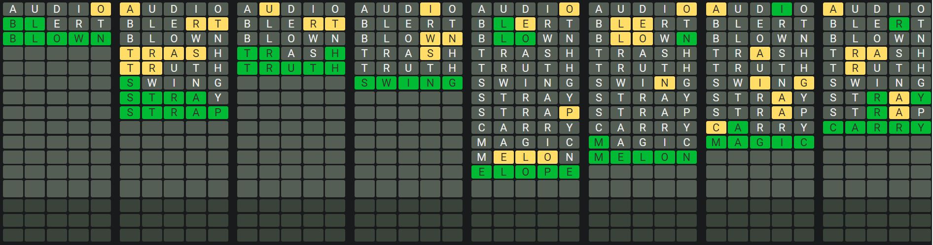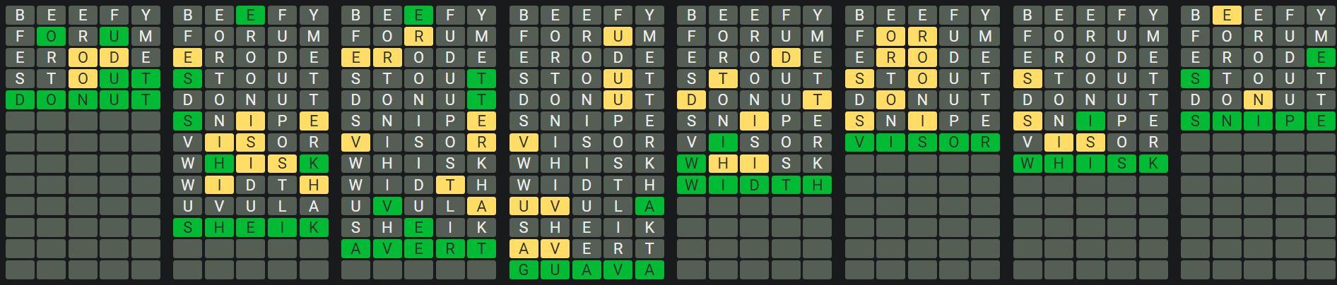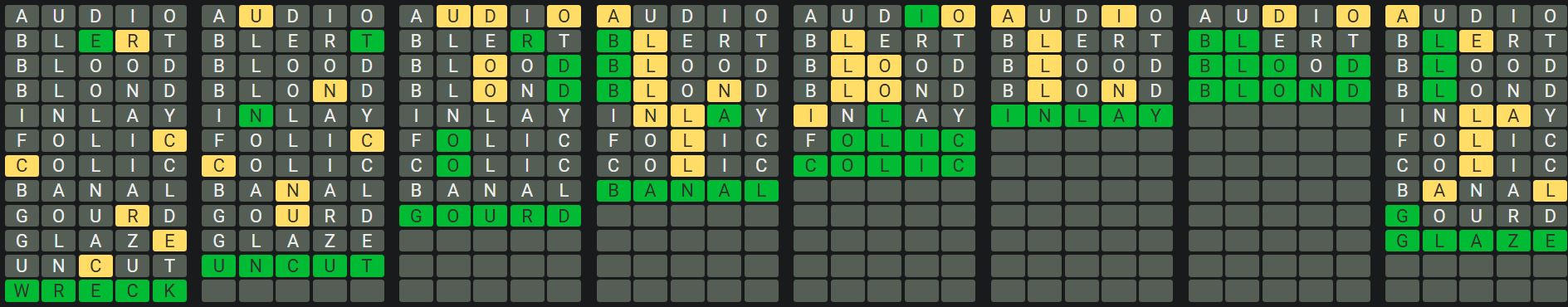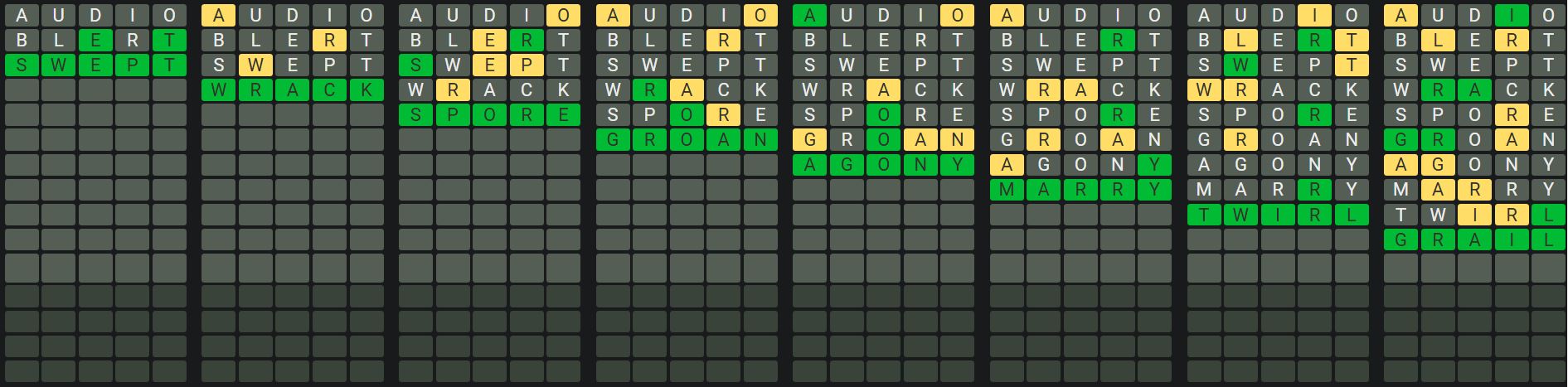 The Sequence Mode is similar to the original Octordle game with the following changes.