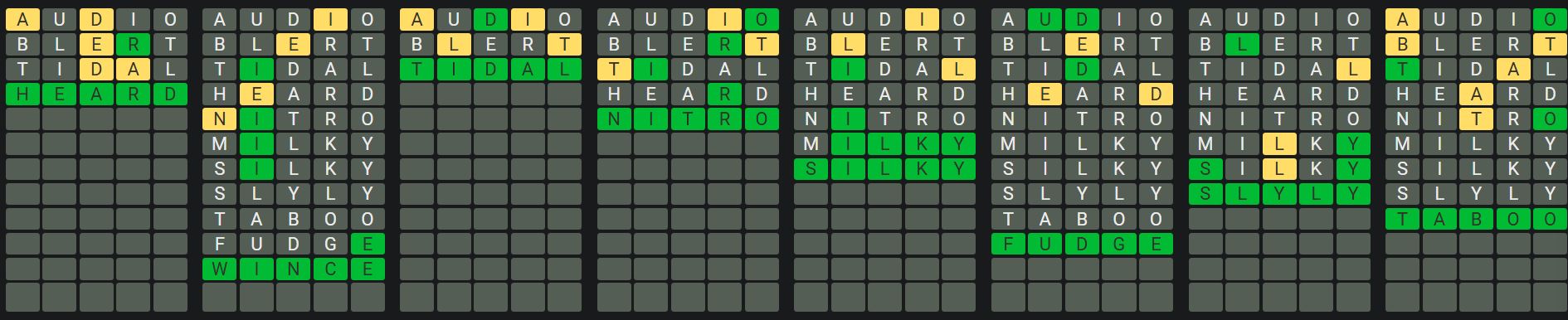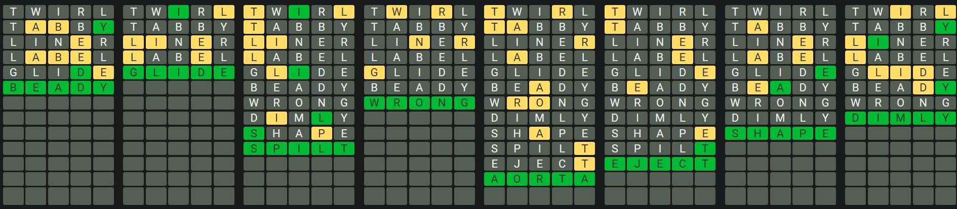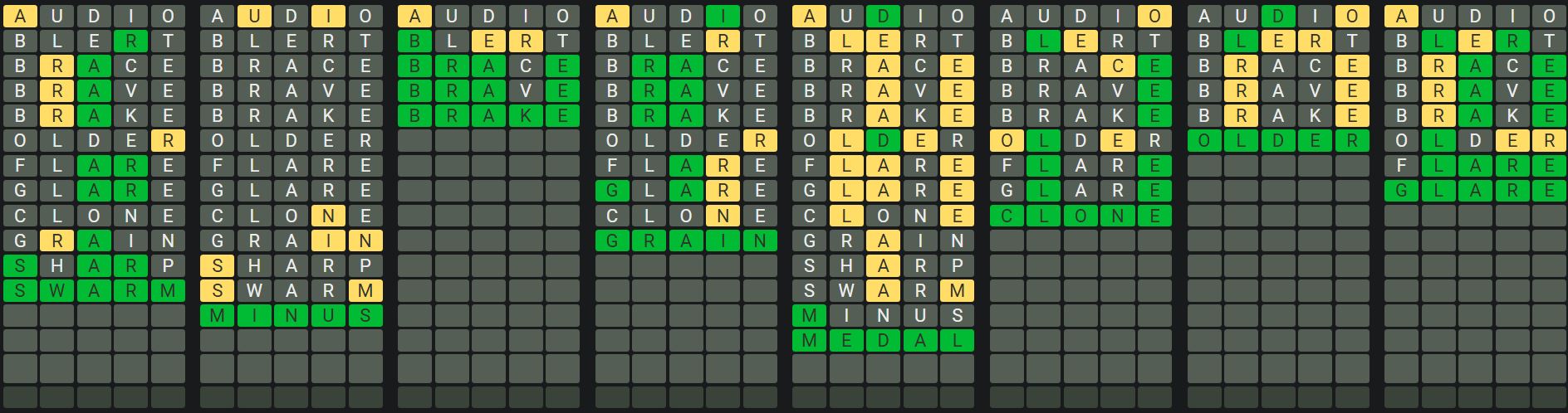 The Sequence Mode is similar to the original Octordle game with the following changes.
