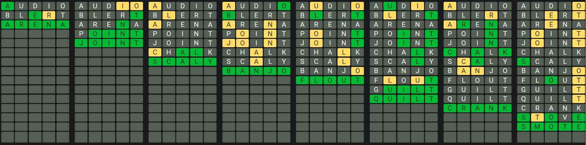 Click here for the hints and the answers to Octordle 1084!