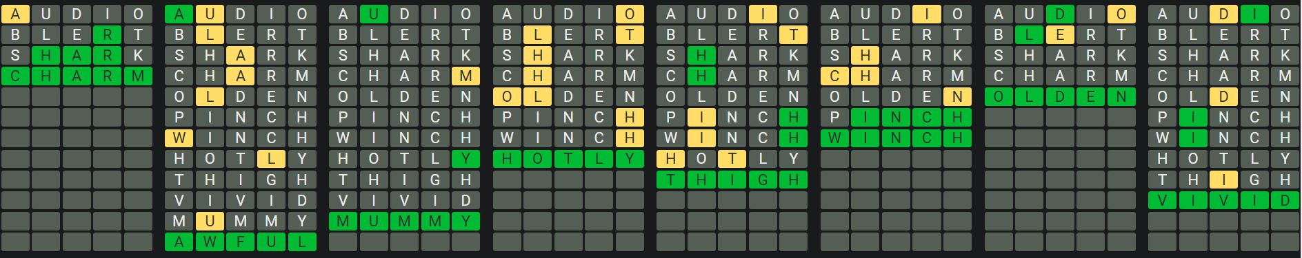 - Only one unsolved word is visible at a time. Once you solve a word, the next board is unlocked.
