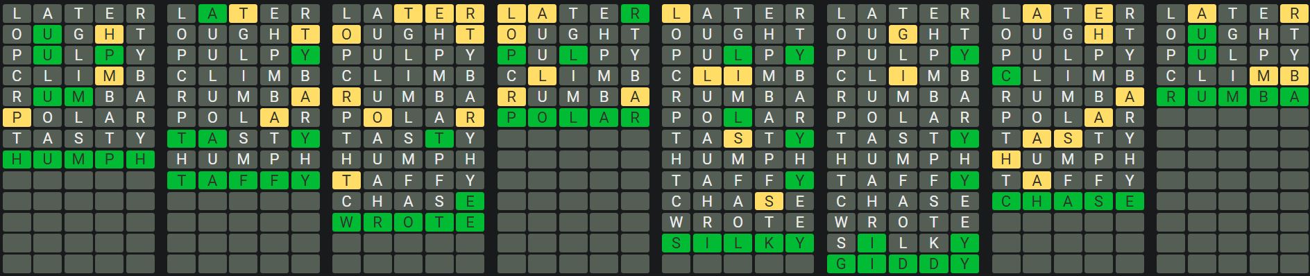 The Sequence Mode is similar to the original Octordle game with the following changes.