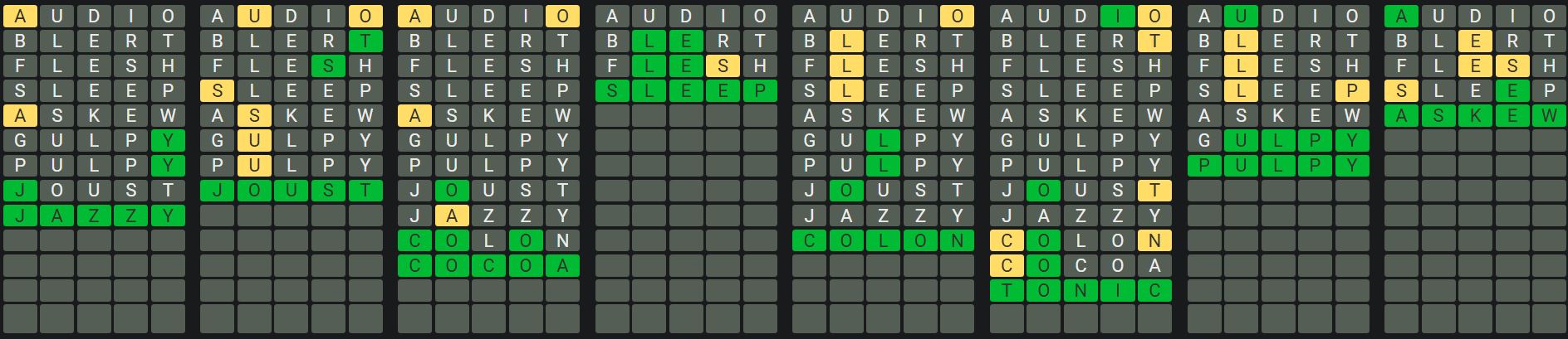 The Sequence Mode is similar to the original Octordle game with the following changes.