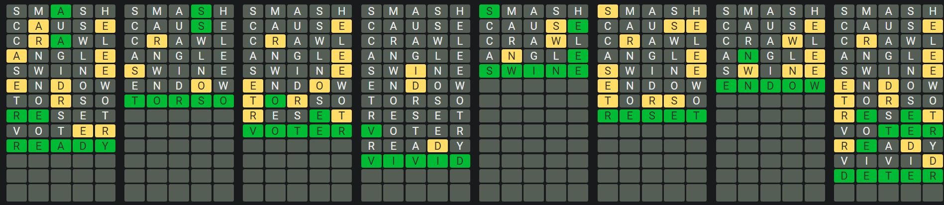 Octordle is a difficult game in which players must guess eight five-letter words at the same time while only having thirteen guesses! The game functions similarly to Wordle in that there are no clues to assist you in guessing the words, but once you have guessed a word, the tiles will change colour.