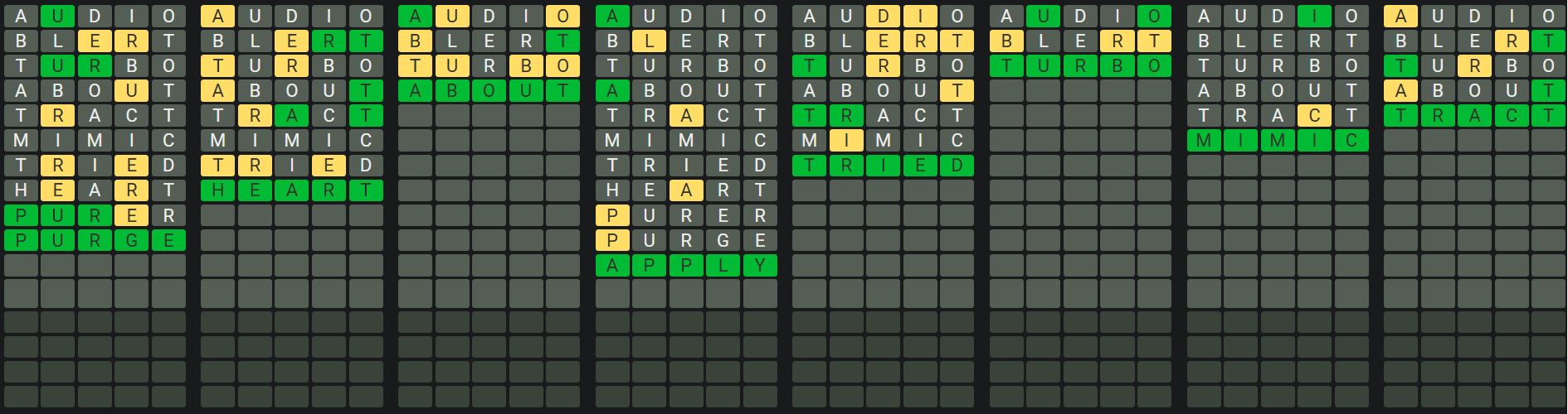 The Sequence Mode is similar to the original Octordle game with the following changes.