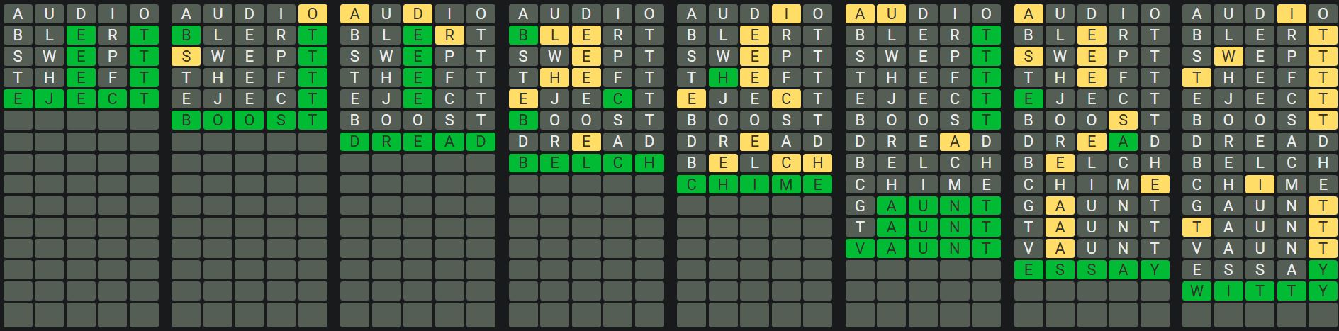 - Only one unsolved word is visible at a time. Once you solve a word, the next board is unlocked.
