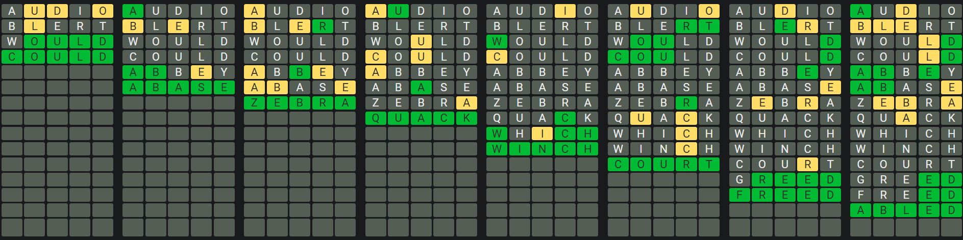 The Sequence Mode is similar to the original Octordle game with the following changes.