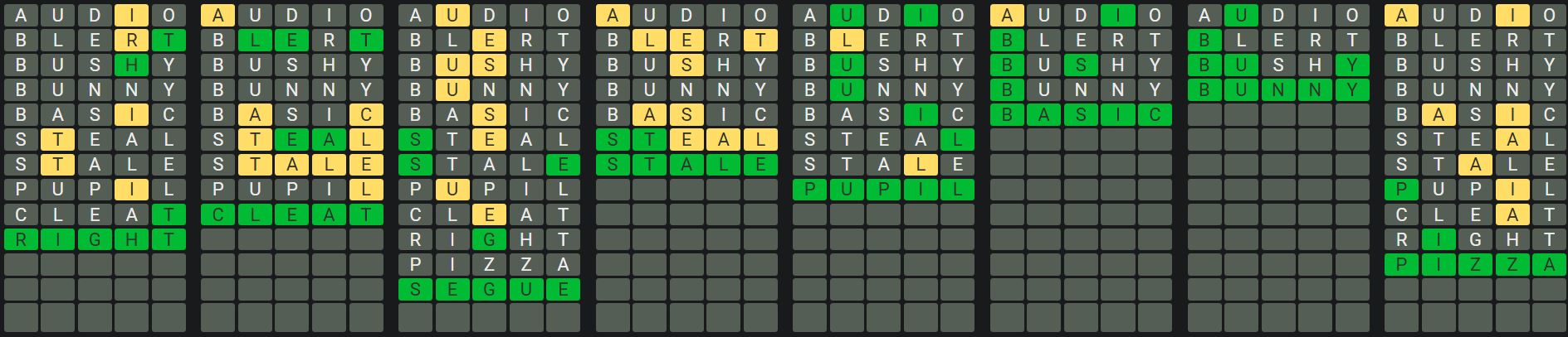 The Sequence Mode is similar to the original Octordle game with the following changes.