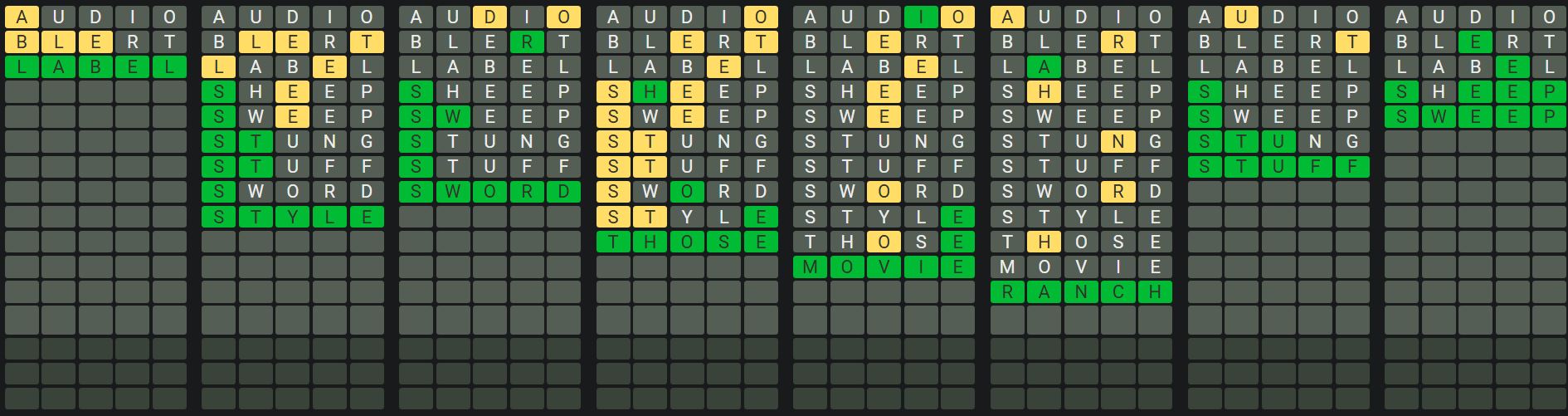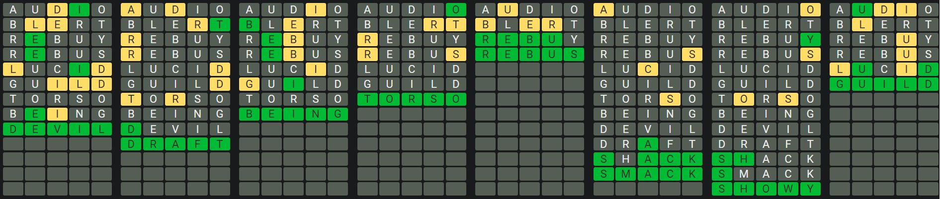 The Sequence Mode is similar to the original Octordle game with the following changes.