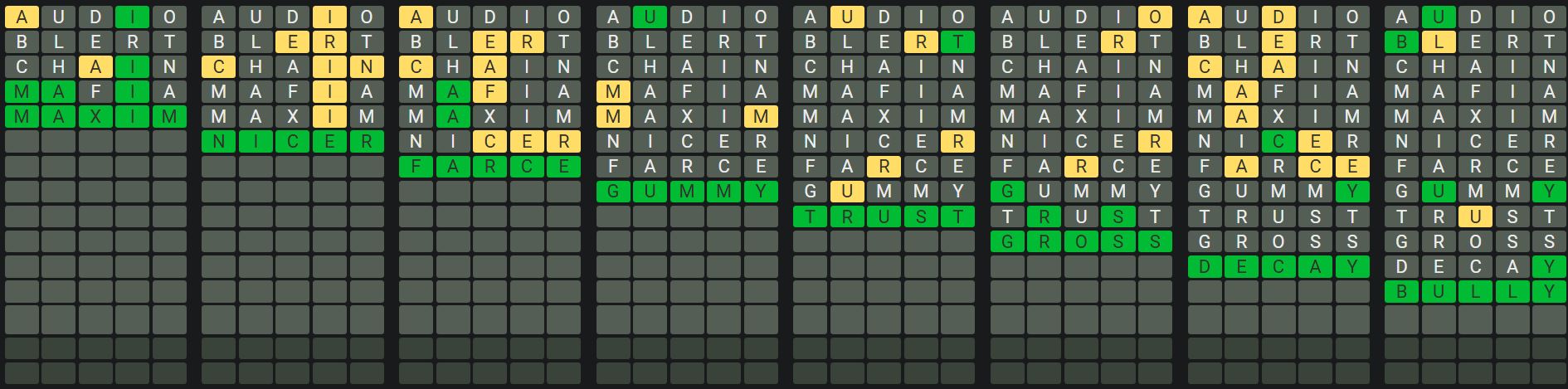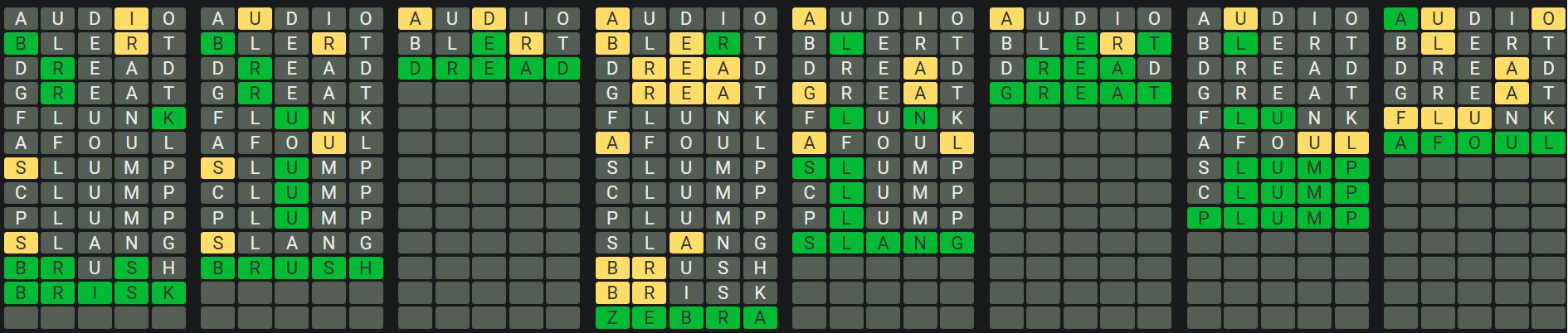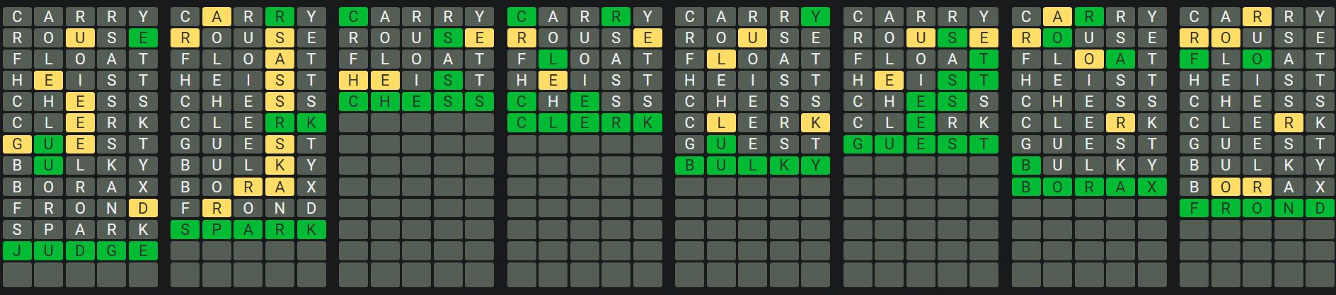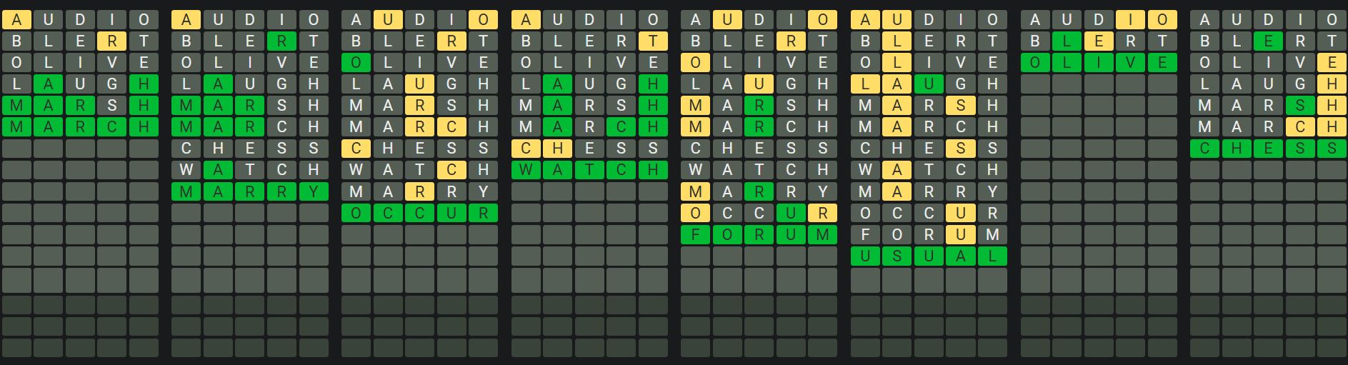 The Sequence Mode is similar to the original Octordle game with the following changes.