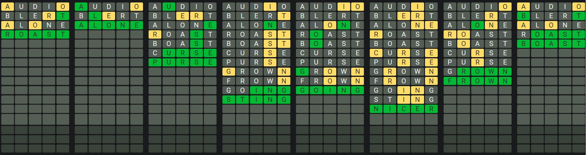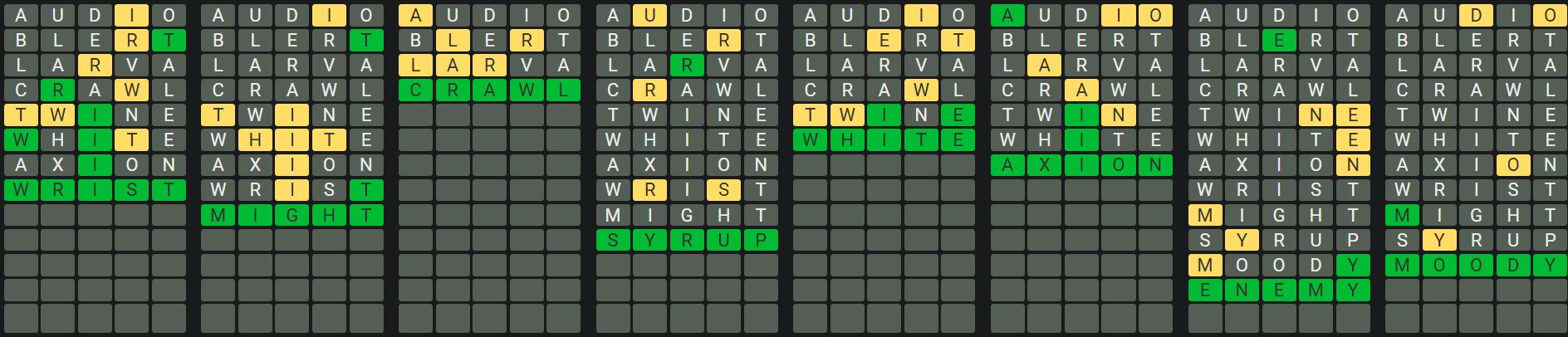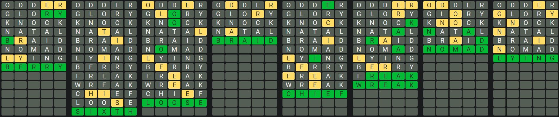 The Sequence Mode is similar to the original Octordle game with the following changes.
