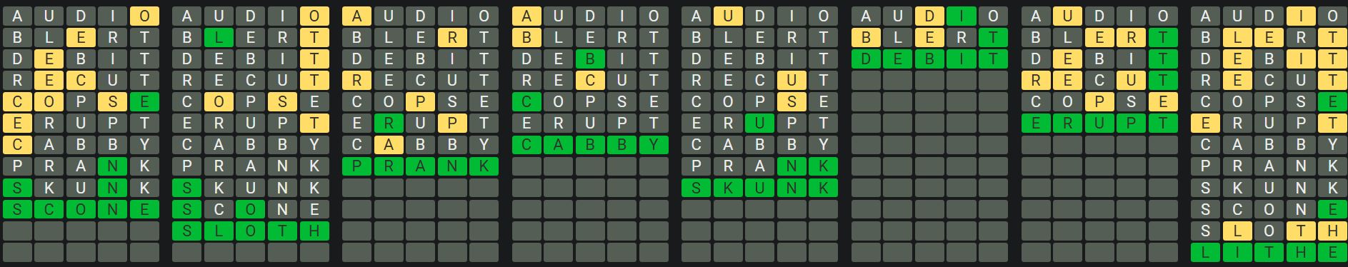 The Sequence Mode is similar to the original Octordle game with the following changes.