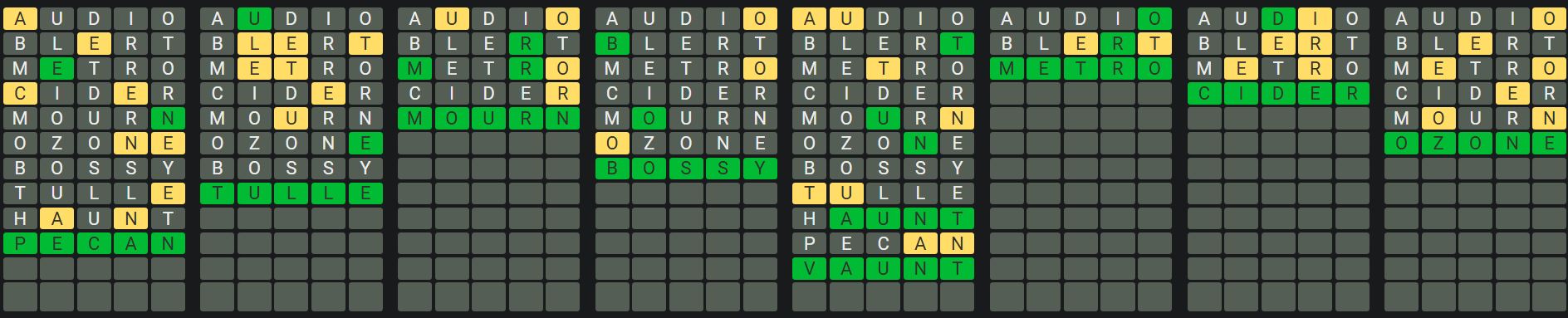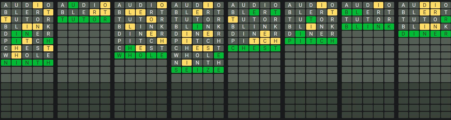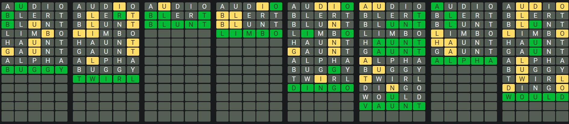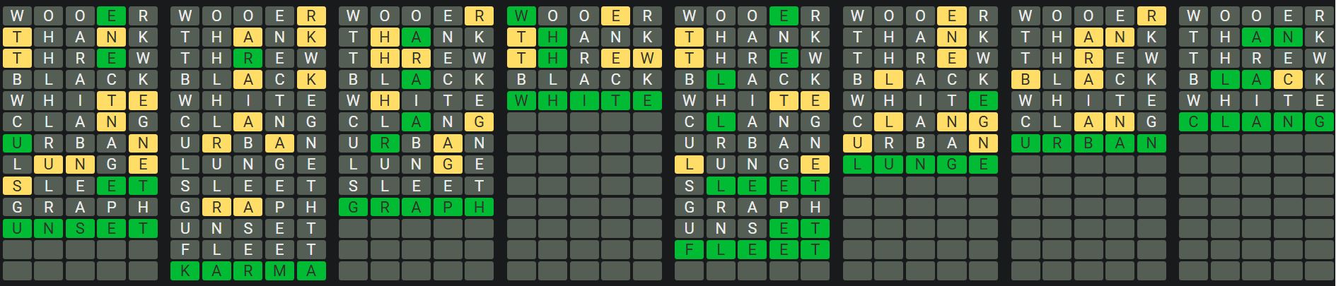 The Sequence Mode is similar to the original Octordle game with the following changes.