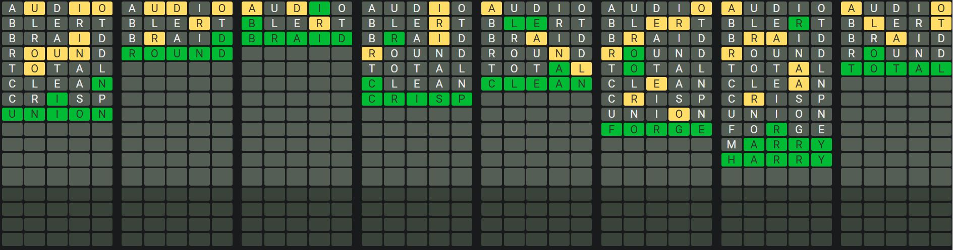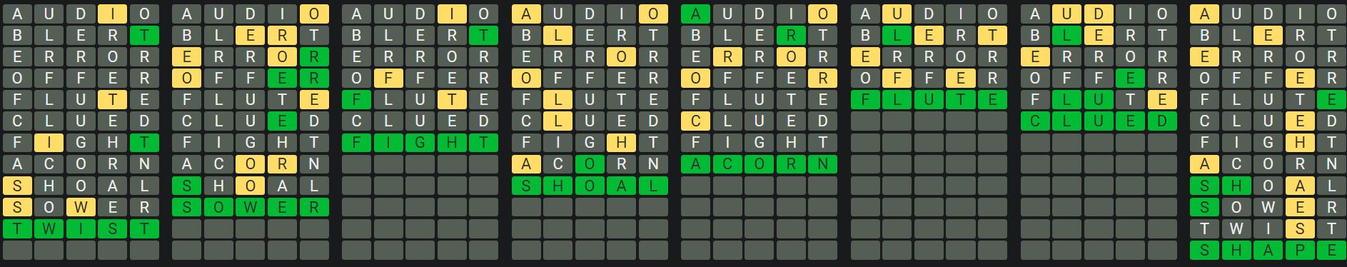 The Sequence Mode is similar to the original Octordle game with the following changes.