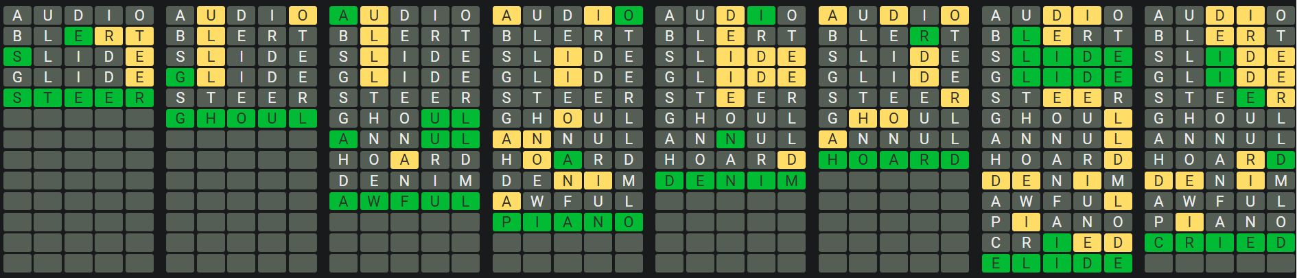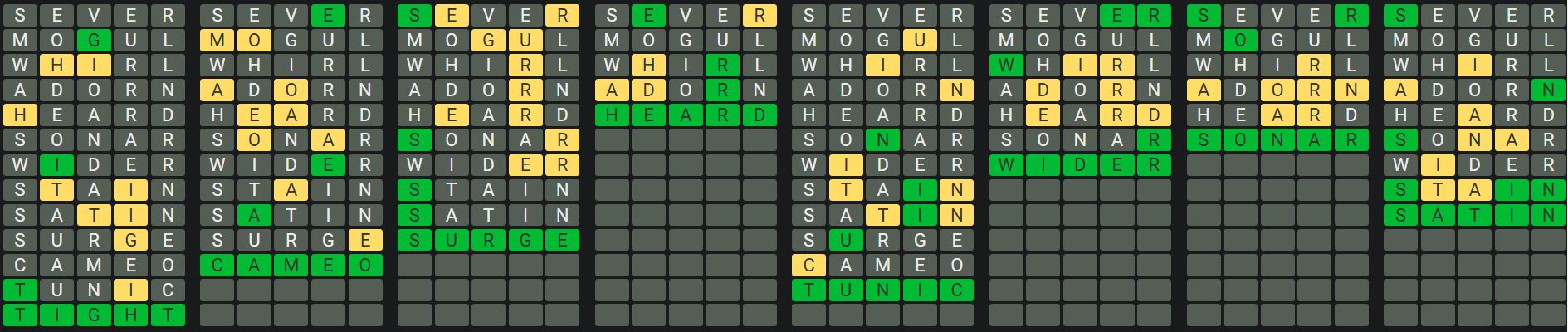 The Sequence Mode is similar to the original Octordle game with the following changes.