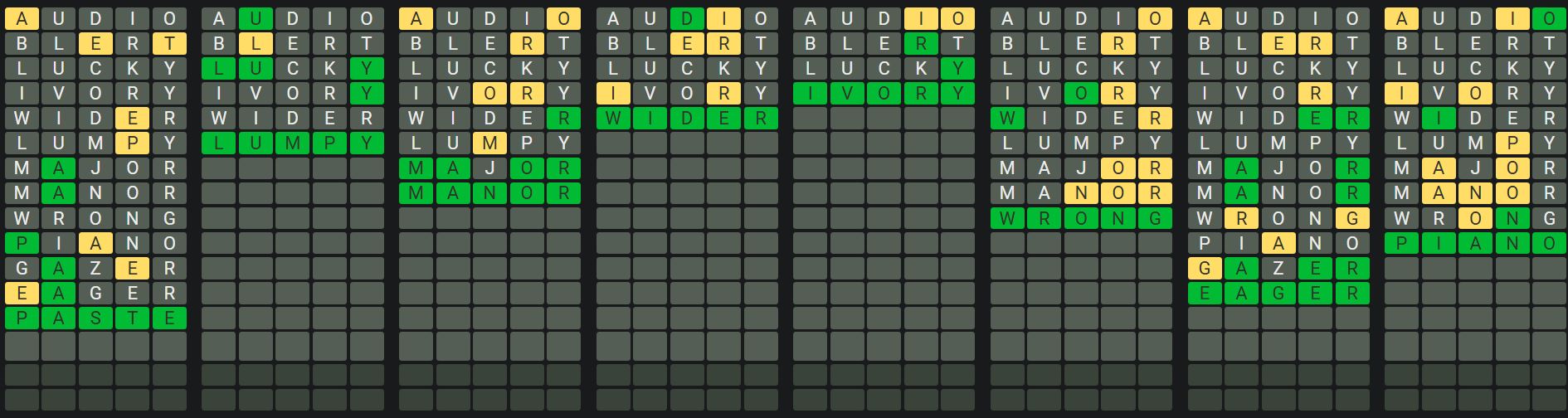 The Sequence Mode is similar to the original Octordle game with the following changes.