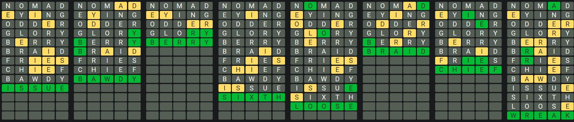 The Sequence Mode is similar to the original Octordle game with the following changes.