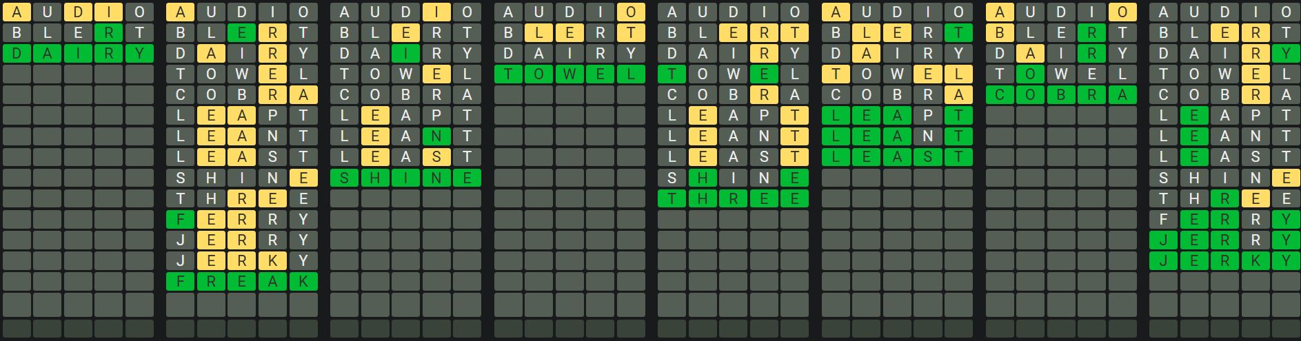 The Sequence Mode is similar to the original Octordle game with the following changes.