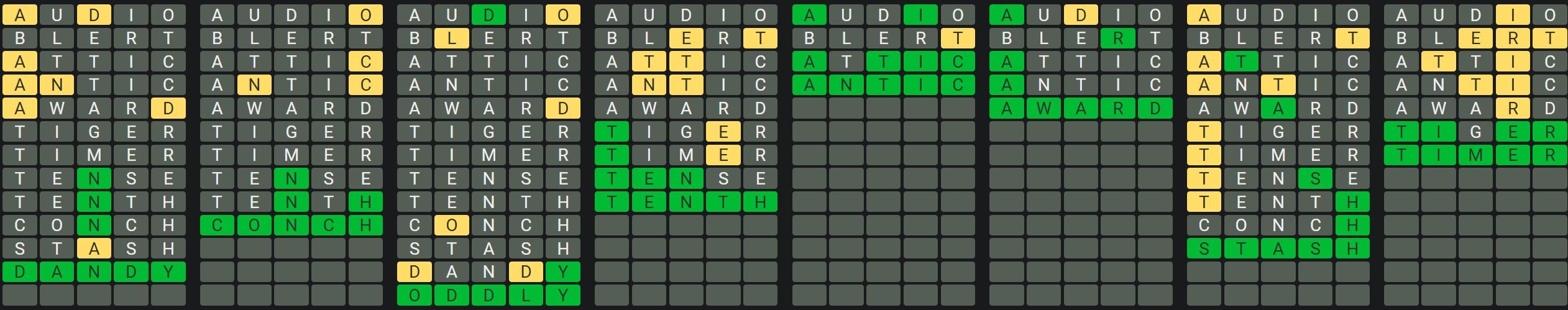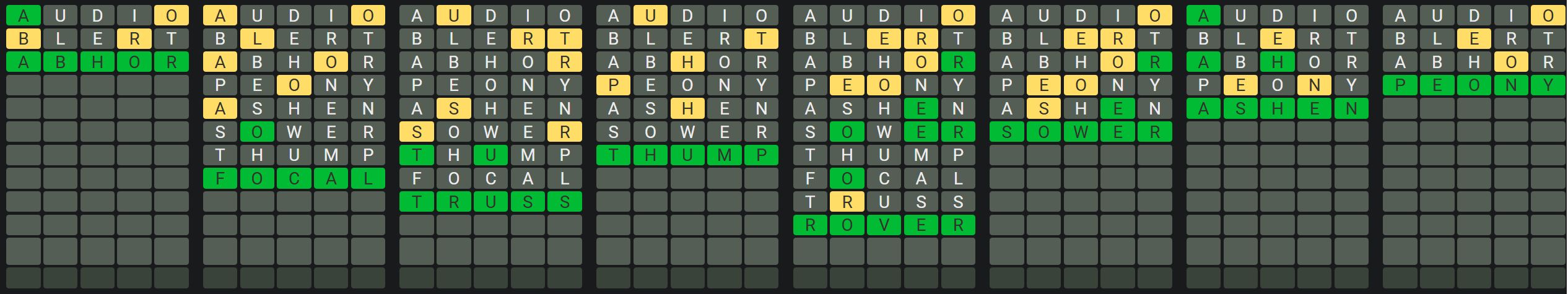 The Sequence Mode is similar to the original Octordle game with the following changes.