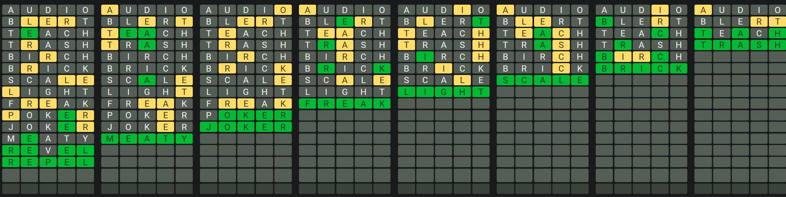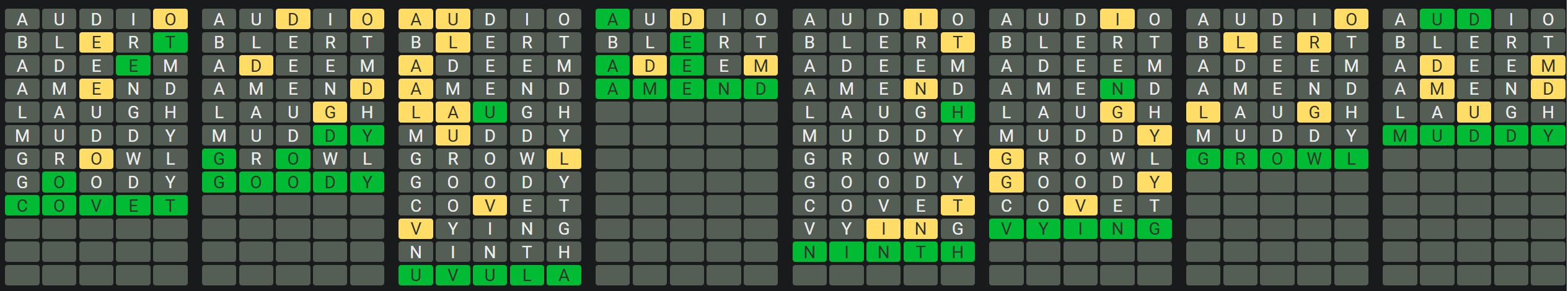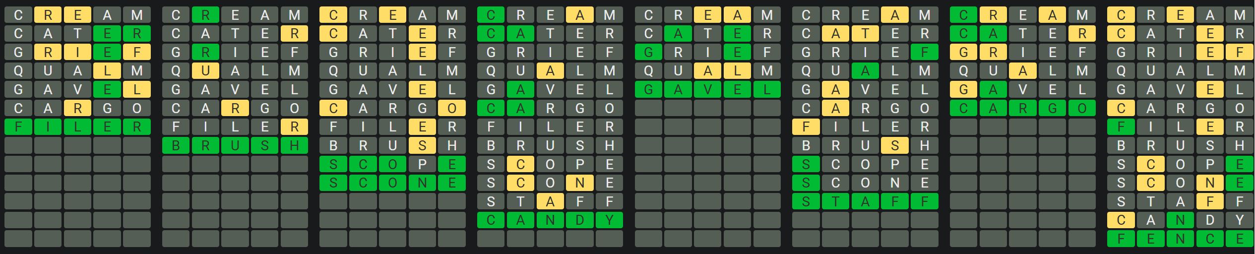 The Sequence Mode is similar to the original Octordle game with the following changes.