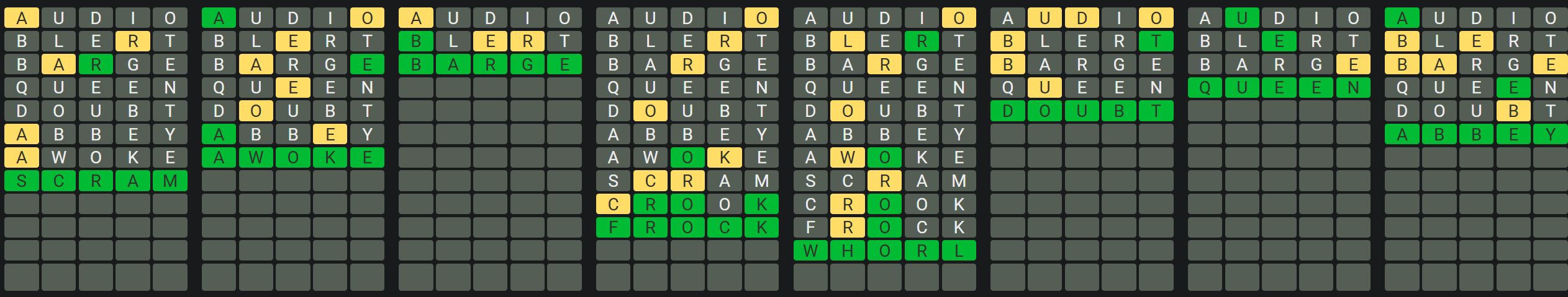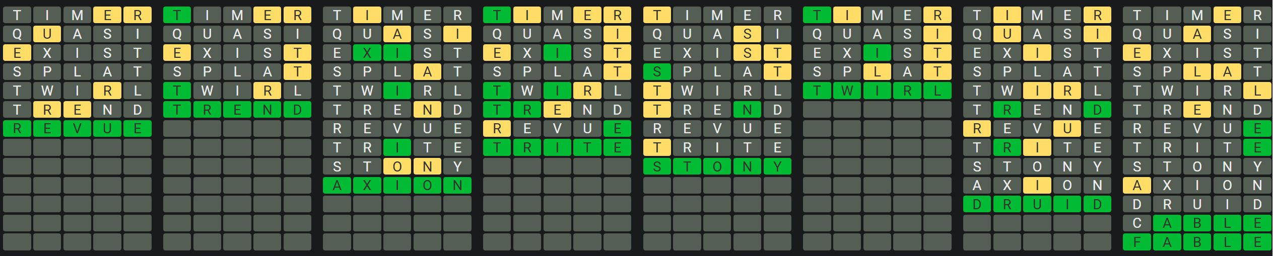 The Sequence Mode is similar to the original Octordle game with the following changes.