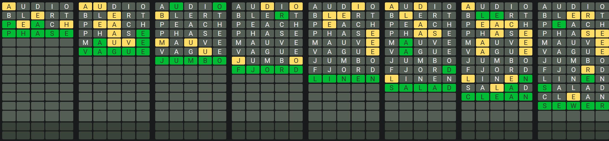 The Sequence Mode is similar to the original Octordle game with the following changes.