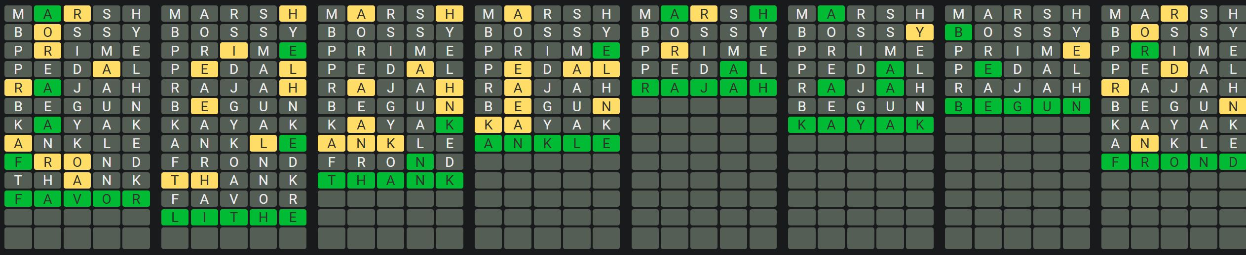 The Sequence Mode is similar to the original Octordle game with the following changes.