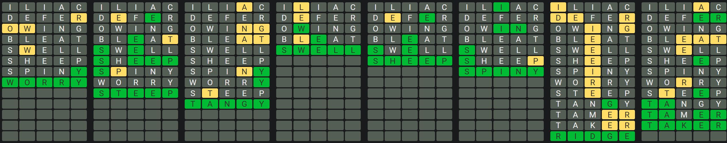 The Sequence Mode is similar to the original Octordle game with the following changes.
