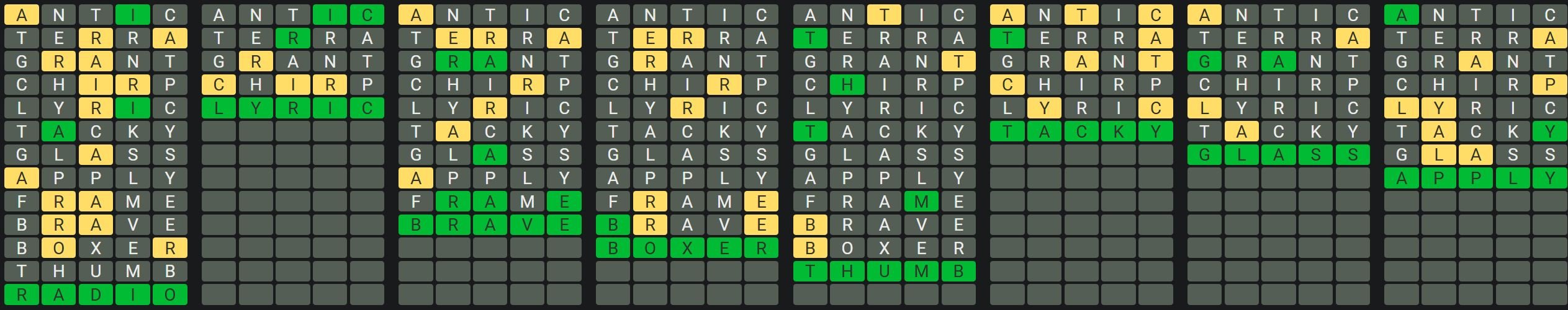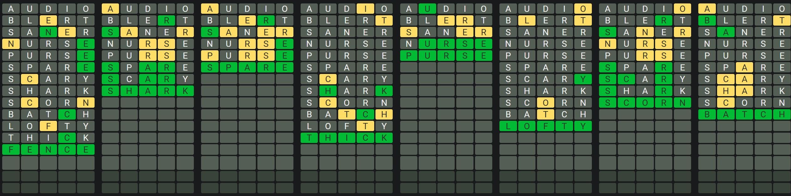 - Only one unsolved word is visible at a time. Once you solve a word, the next board is unlocked.