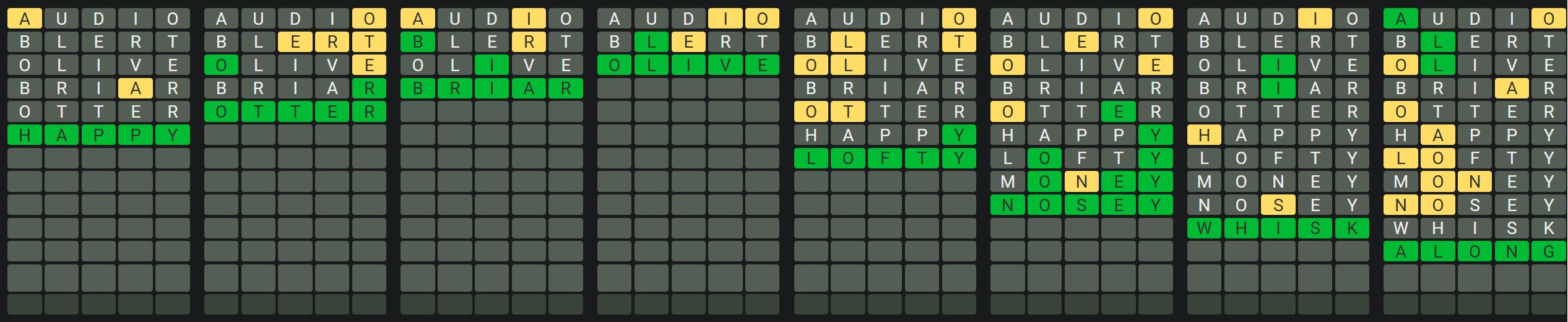 The Sequence Mode is similar to the original Octordle game with the following changes.