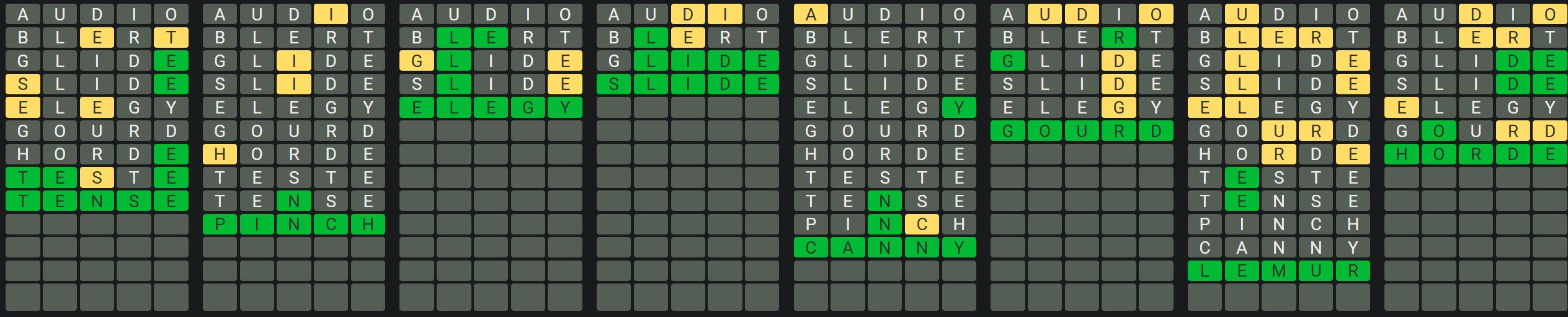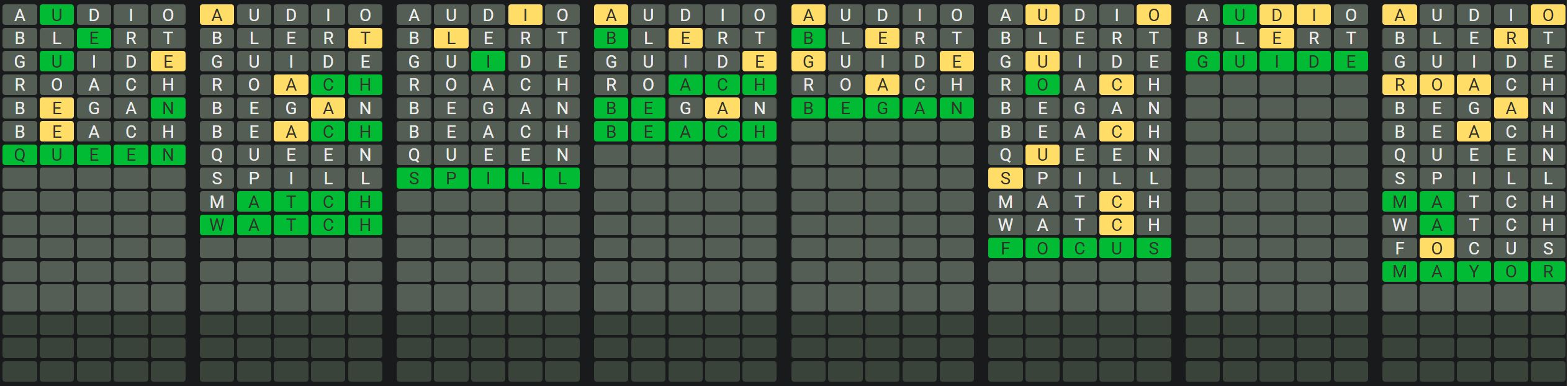 The Sequence Mode is similar to the original Octordle game with the following changes.