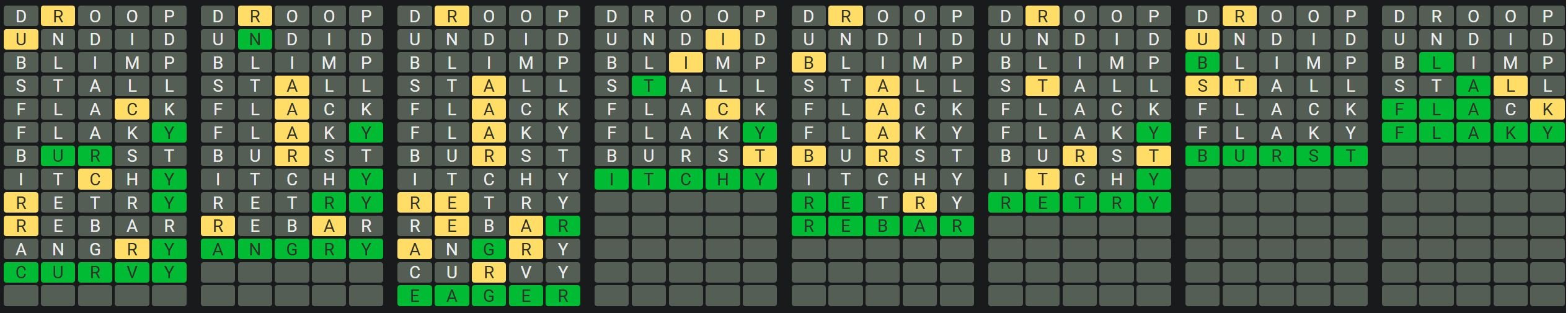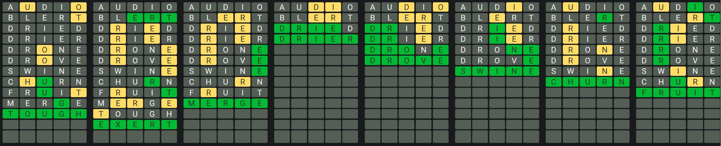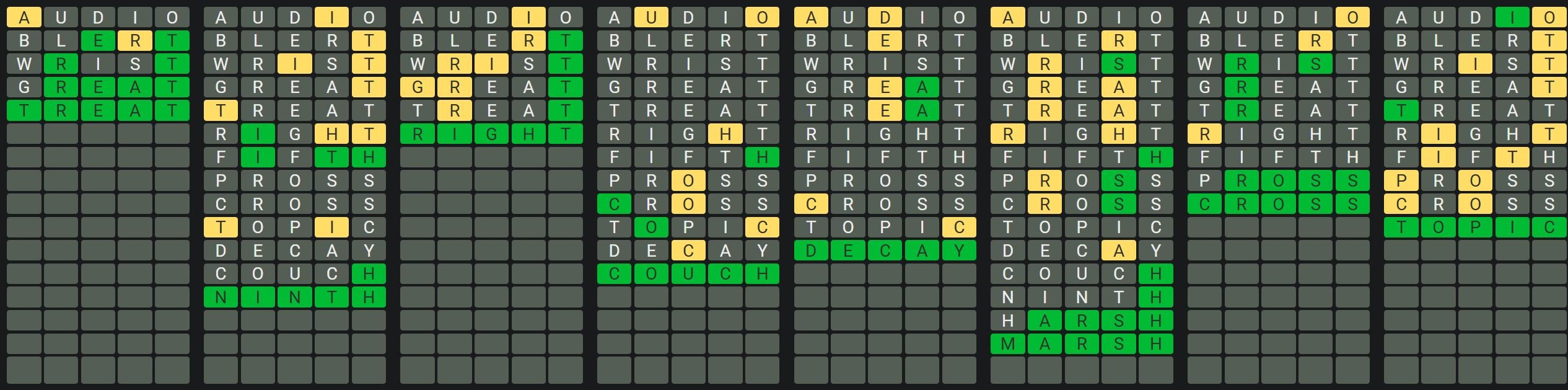 The Sequence Mode is similar to the original Octordle game with the following changes.