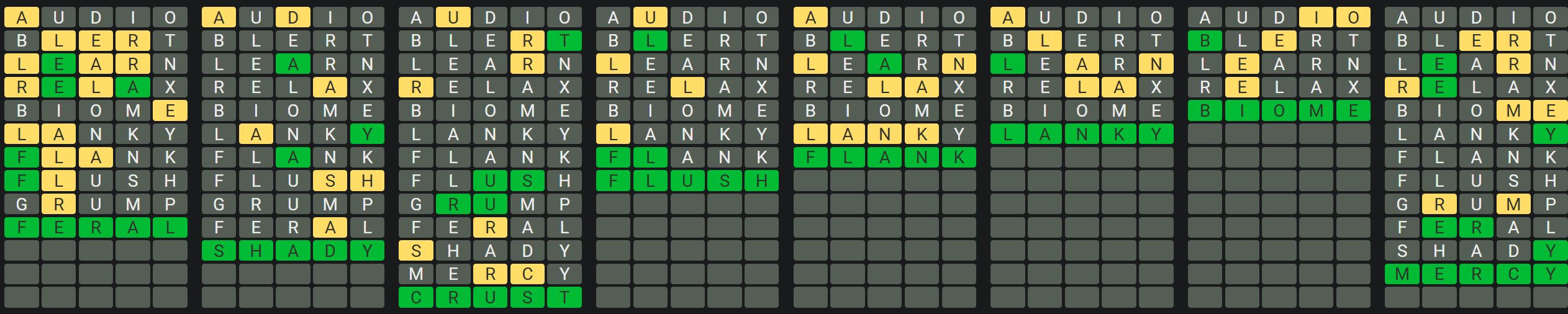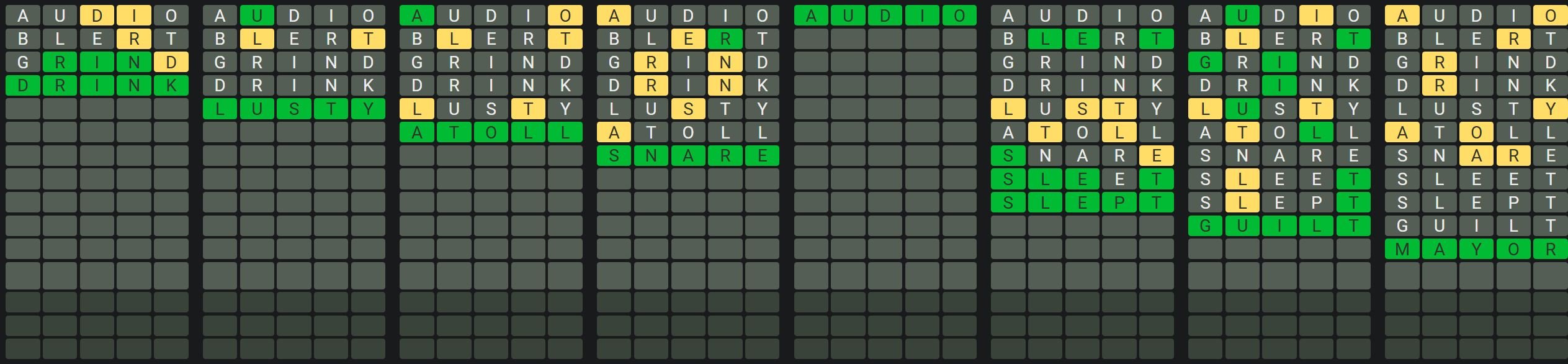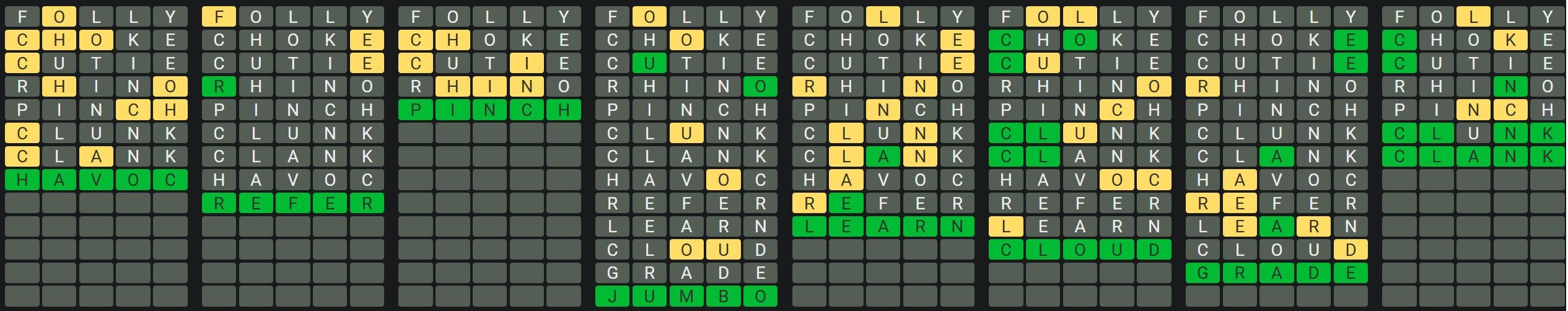 The Sequence Mode is similar to the original Octordle game with the following changes.