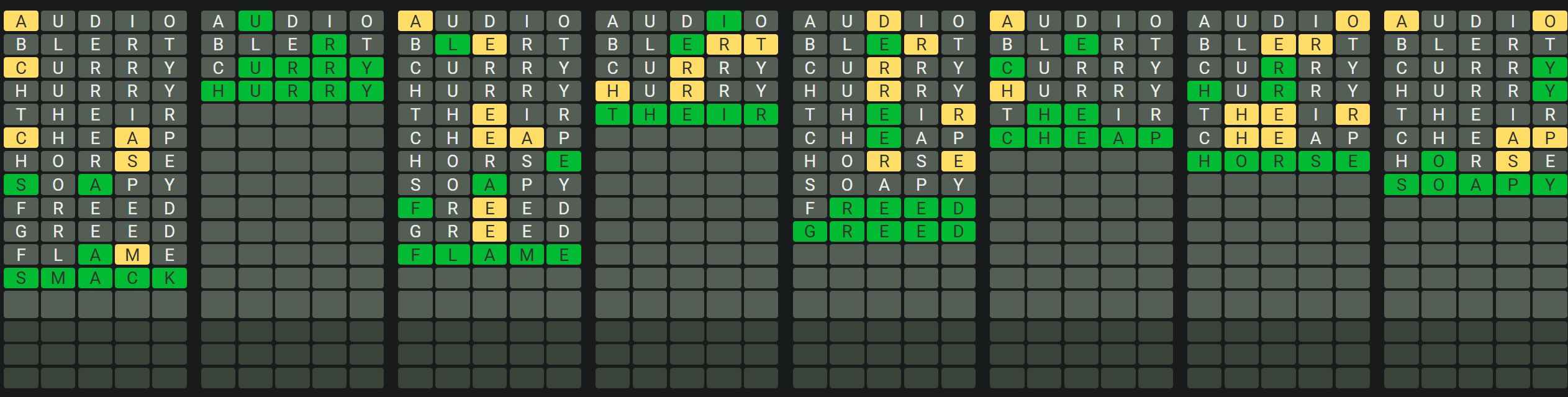 - Only one unsolved word is visible at a time. Once you solve a word, the next board is unlocked.