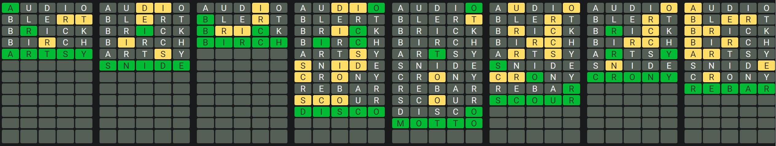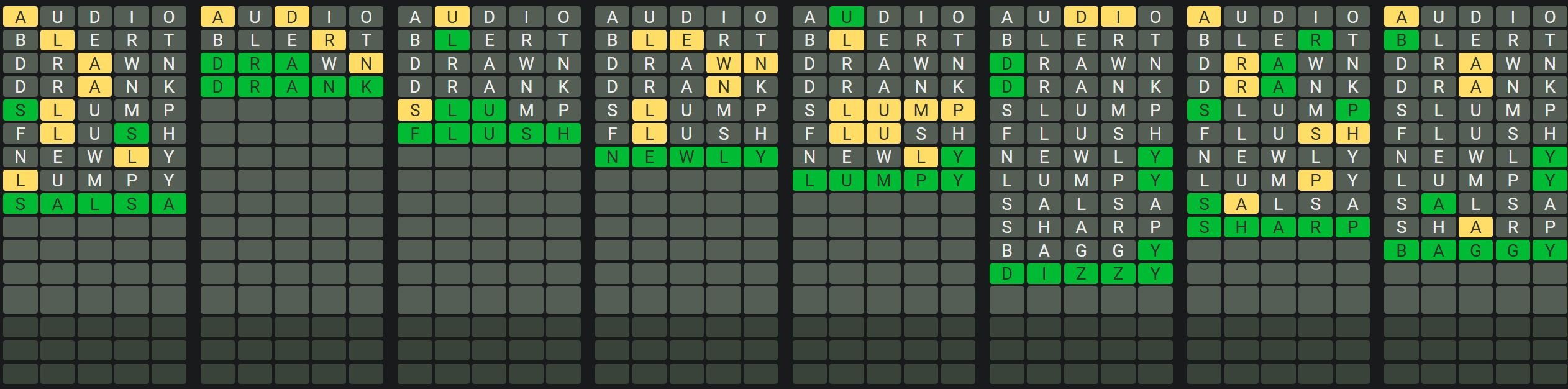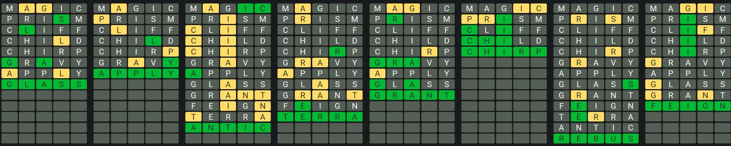 The Sequence Mode is similar to the original Octordle game with the following changes.
