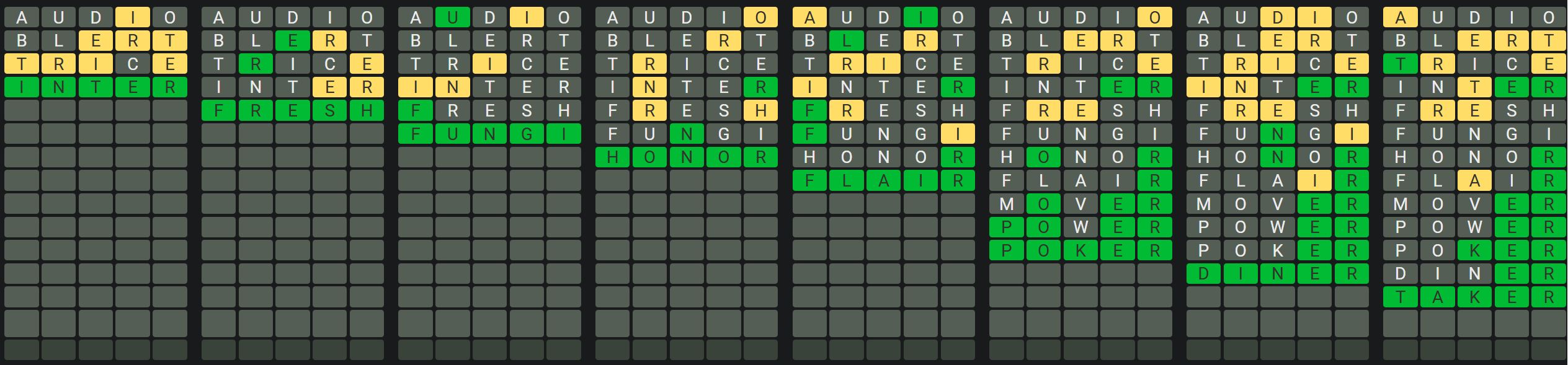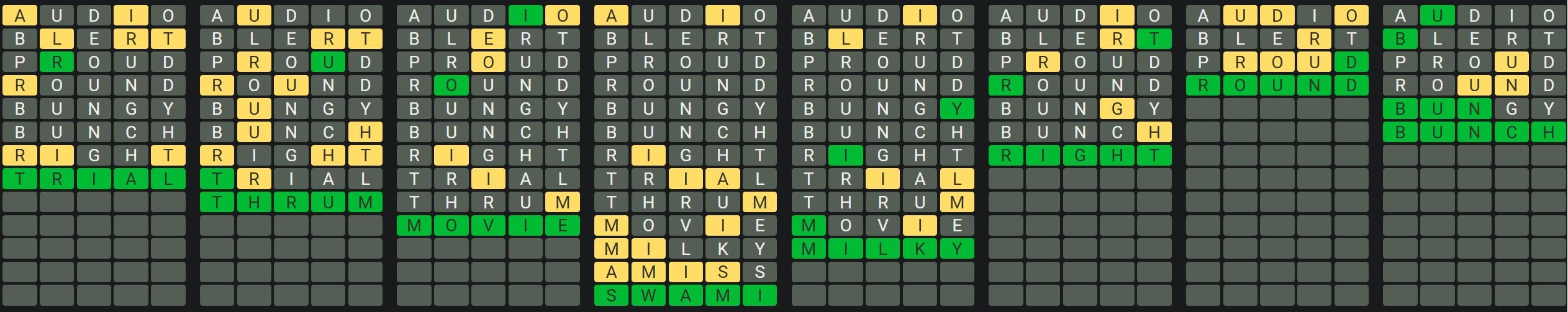 The Sequence Mode is similar to the original Octordle game with the following changes.