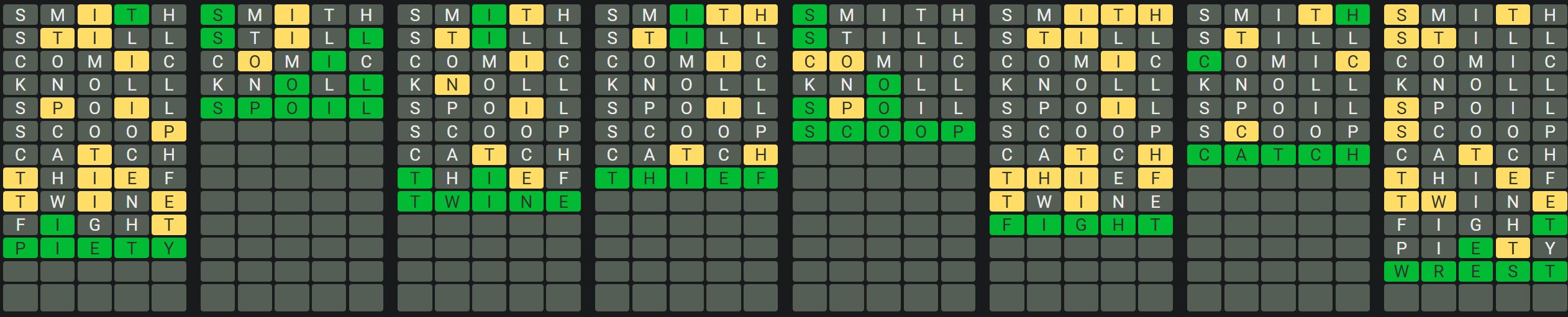 - Only one unsolved word is visible at a time. Once you solve a word, the next board is unlocked.